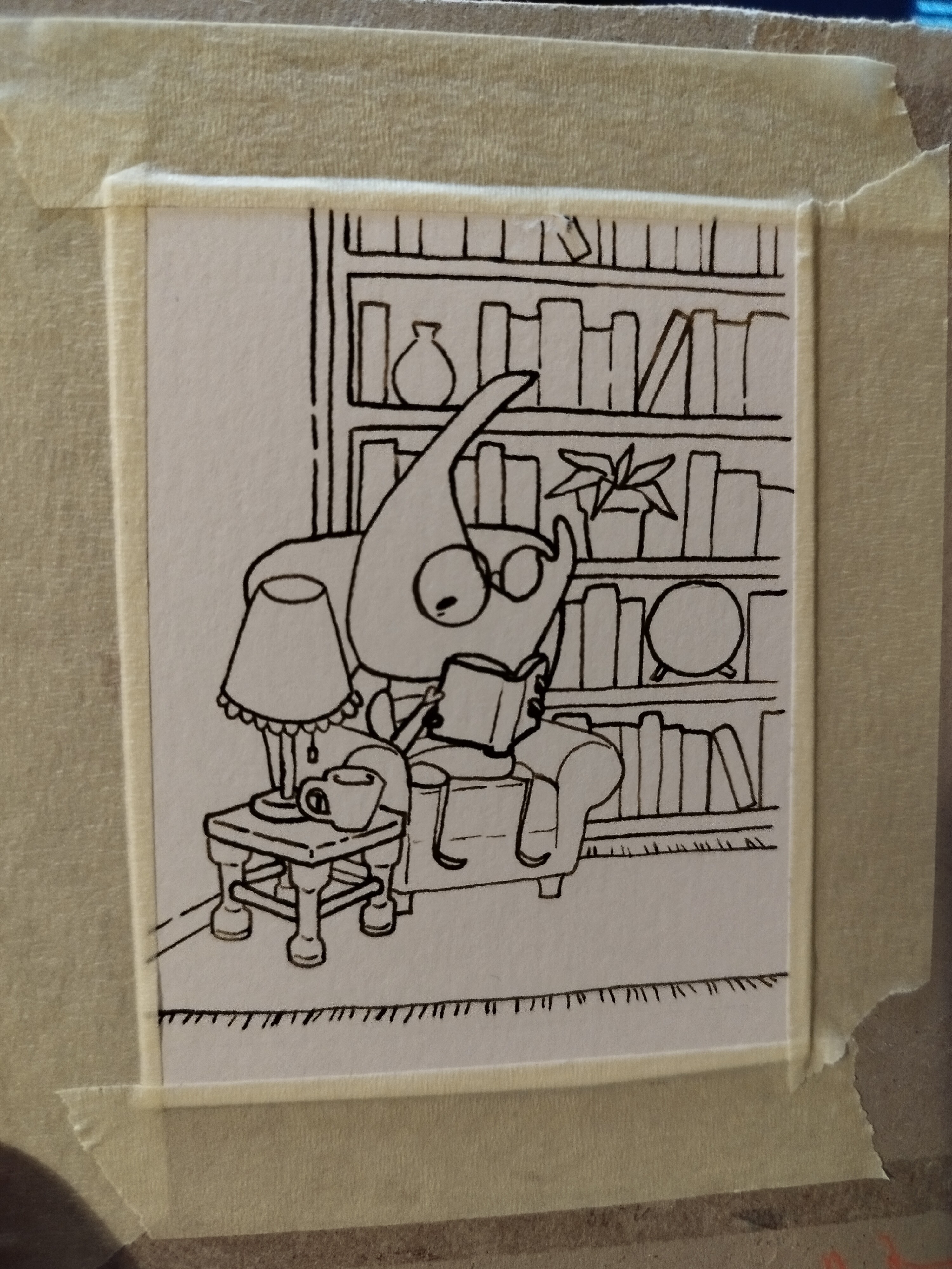 Bevor ich mit der Colo anfange, wollte ich fragen, ob die Karte so ok wäre? Es ist ein Opa Nashornkäfer in seiner Stube beim Lesen. Ich habe mich für das Zimmer stark an einer Referenz orientiert aber Kleinigkeiten abgeändert (https://pin.it/45P4ScW)