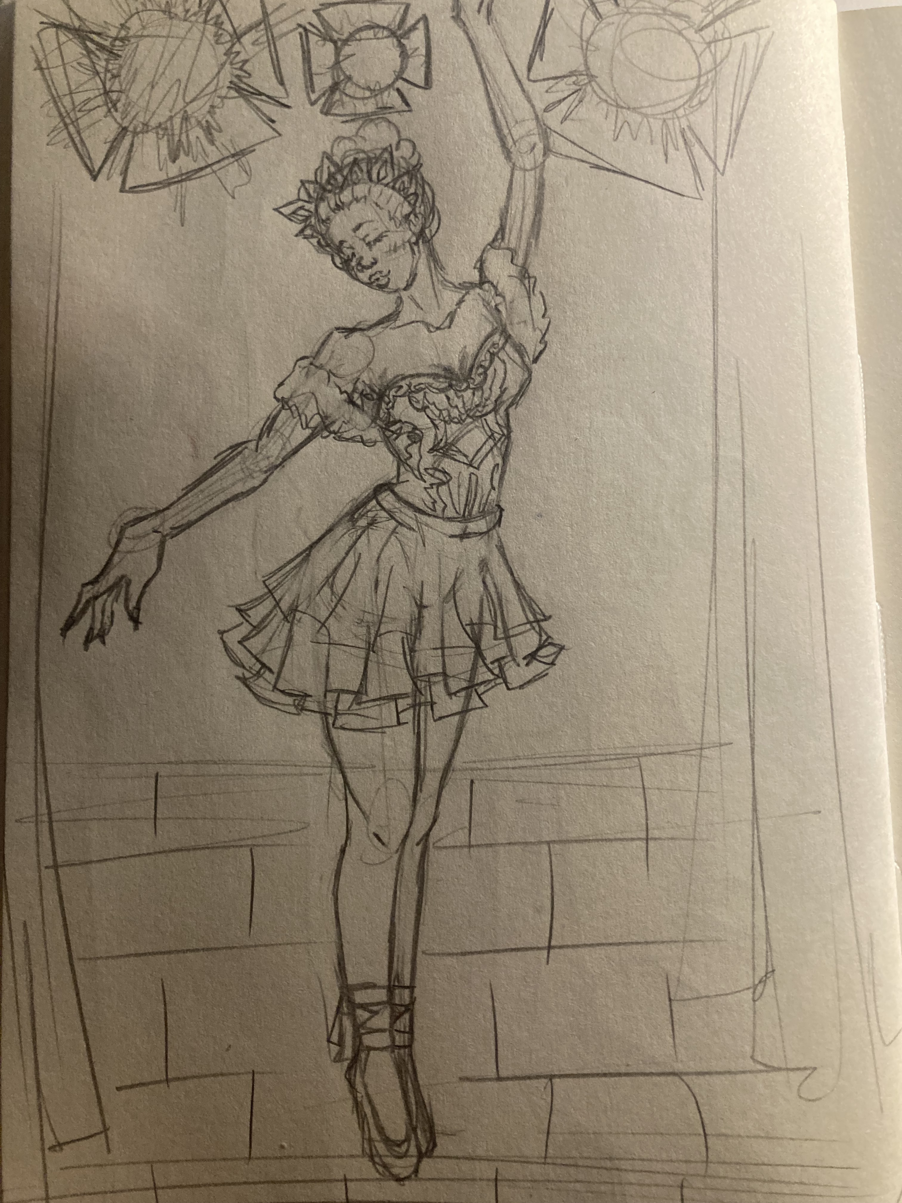 hey hey! hier wäre eine Skizze für eine mögliches weiteres Kärtchen :) zu sehen ist eine Ballett-Tänzerin auf der Bühne!