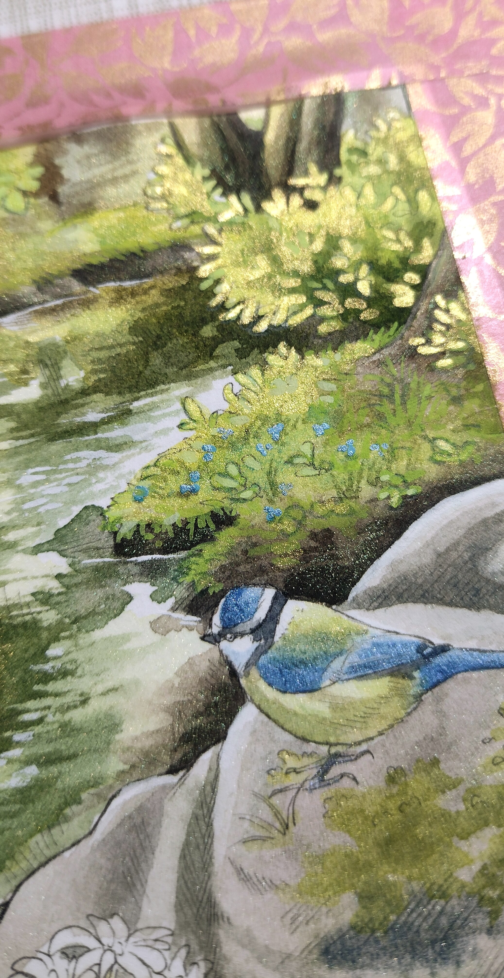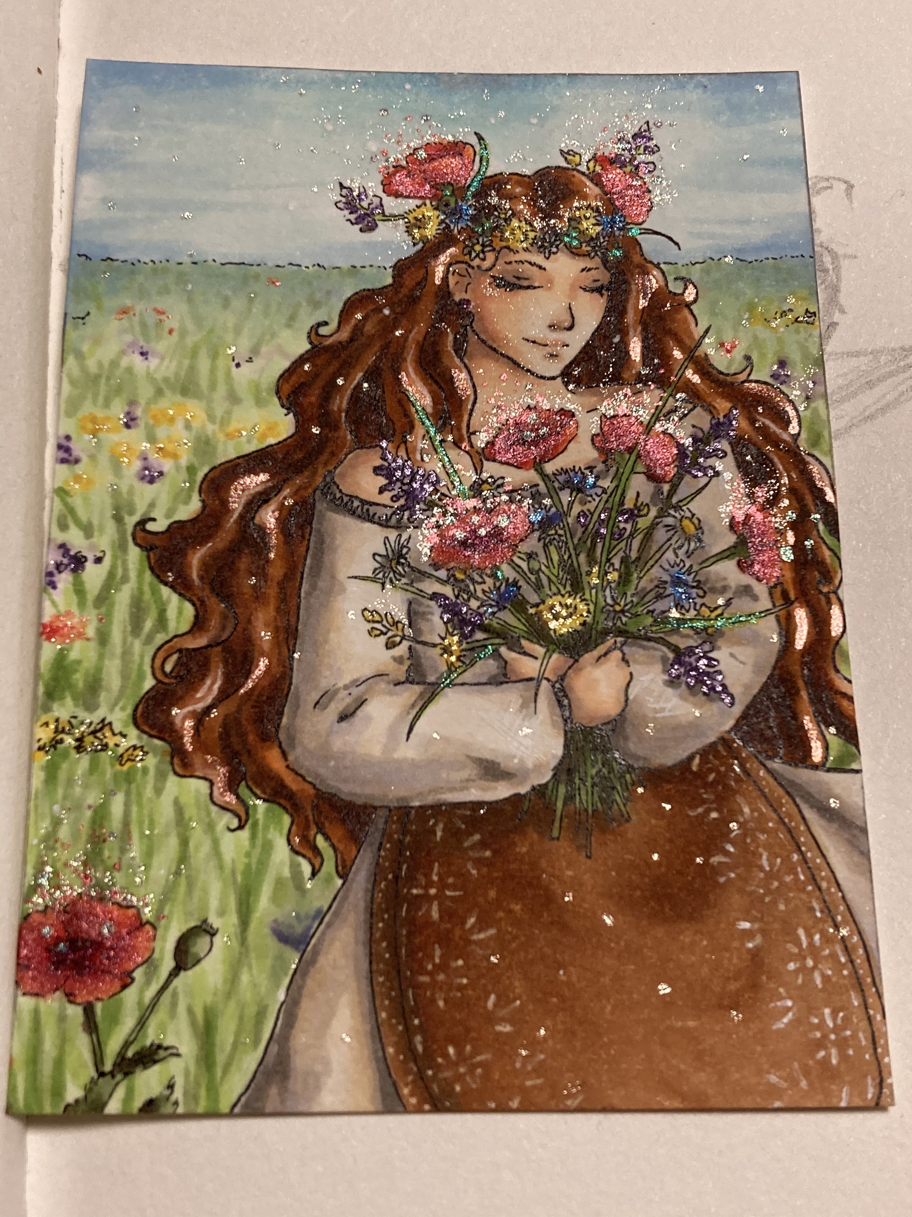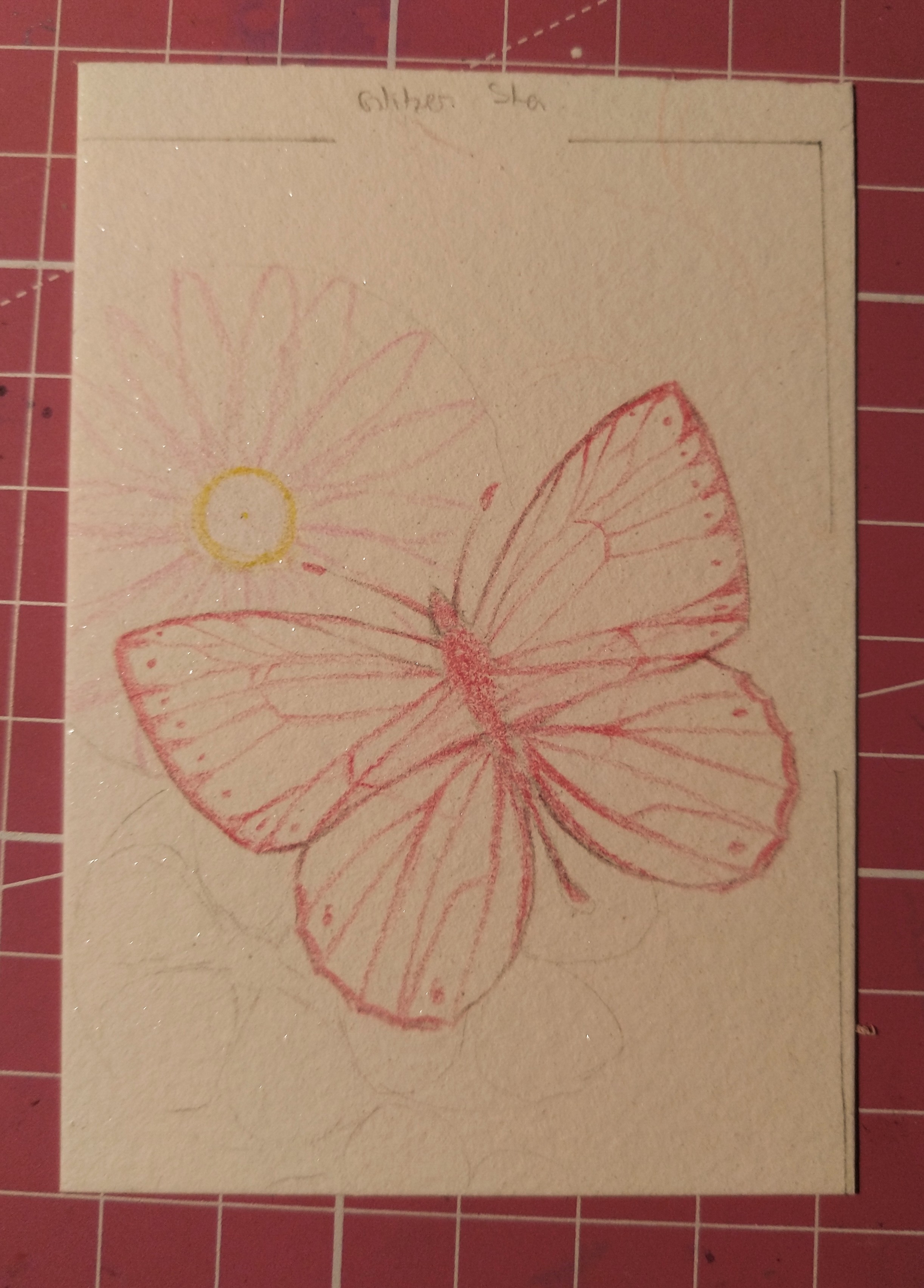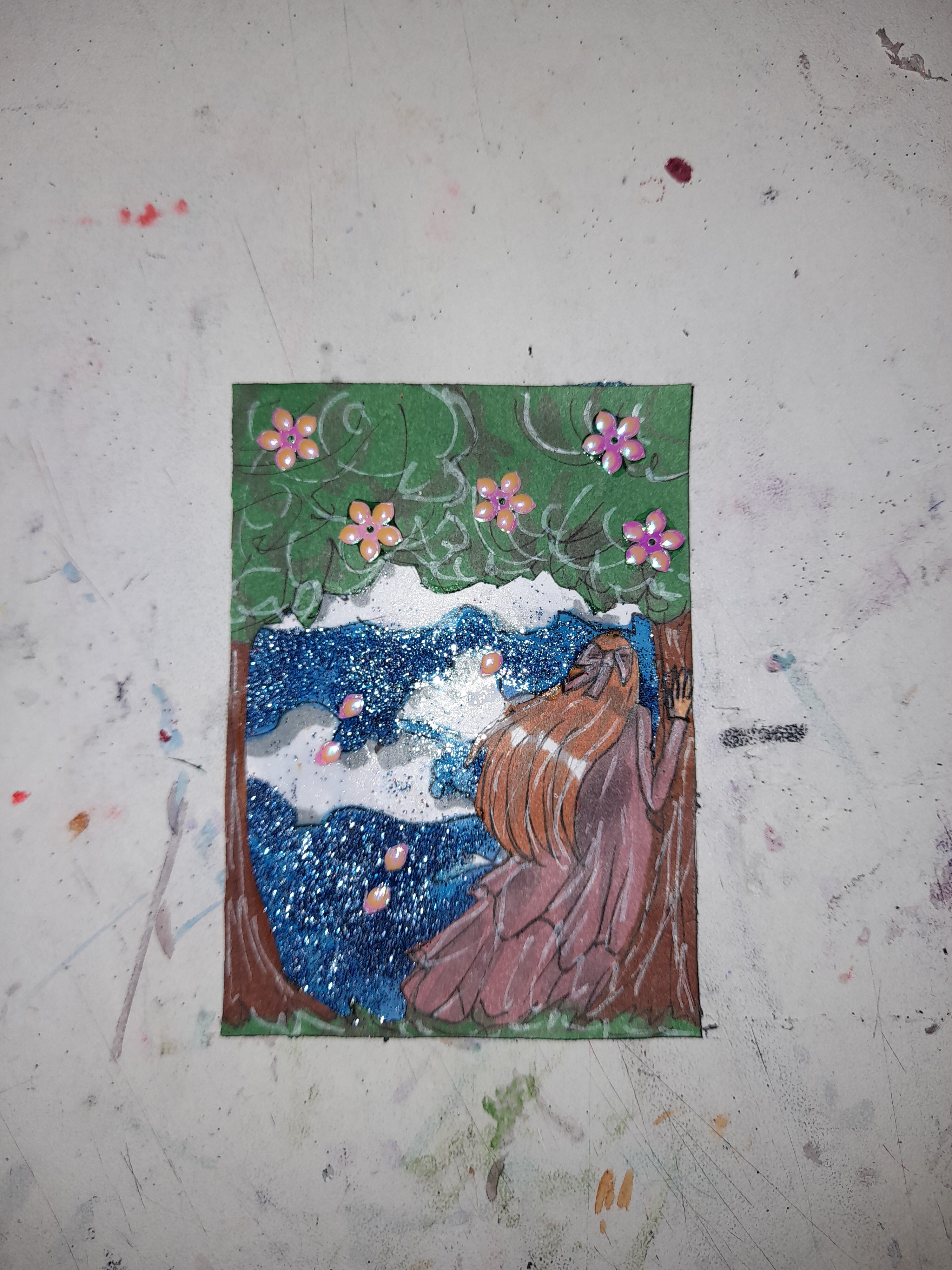 Ich wollte eigentlich ein WIP Foto der ganzen Karte teilen, aber meine Handykamera kommt mit dem ganzen Glitzer nicht klar. xD Also gibt es hier schonmal einen Ausschnitt: