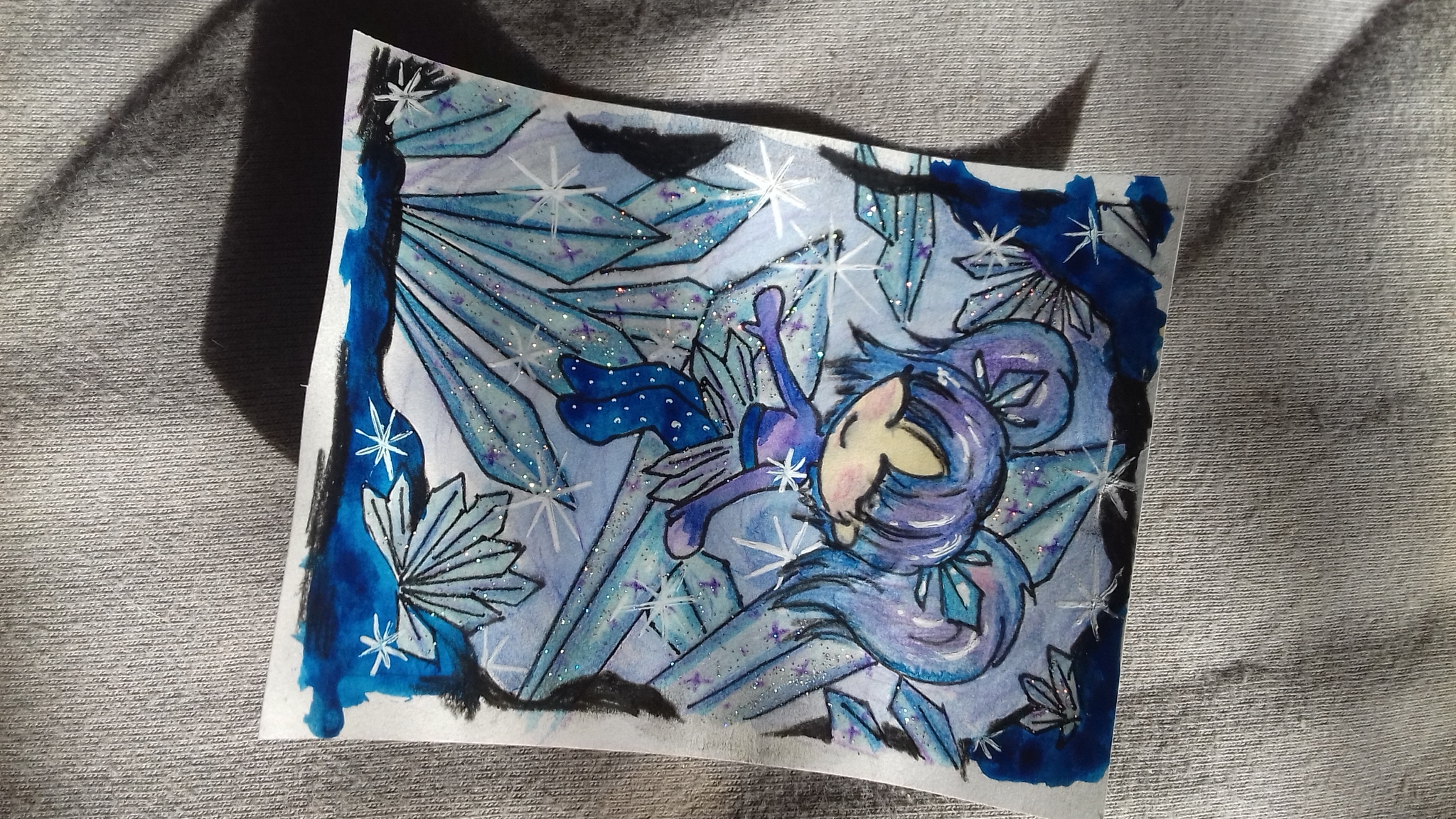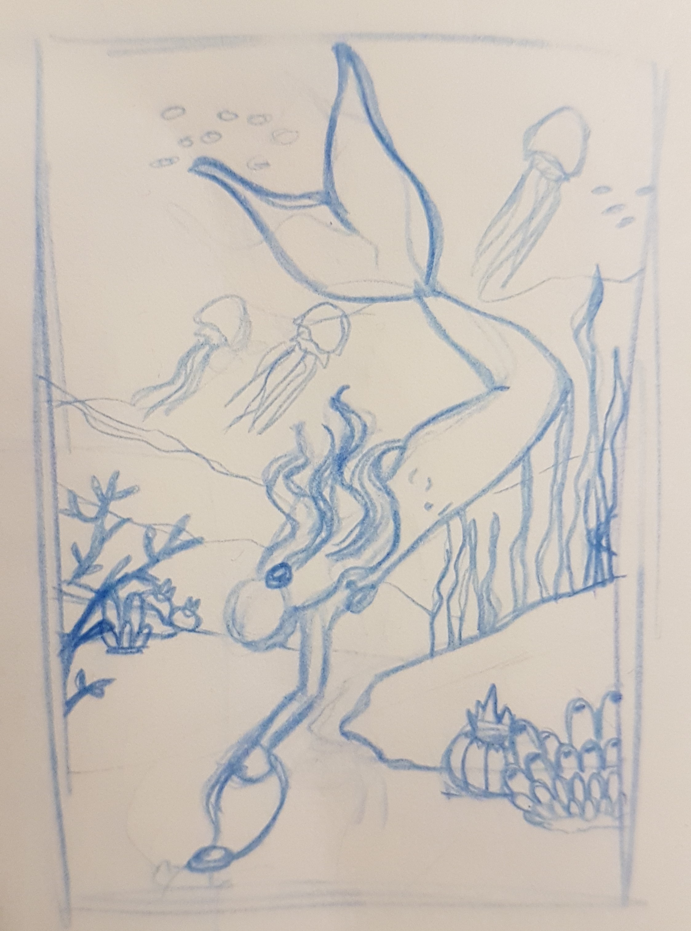 Das Wasser schaut zum Großteil leider eher blau aus mit minimal silbernem Rand. Da könnte man über etwas andere Farben nachdenken und vl mehr Glanz durch Schwarz, Grau und Highlights.