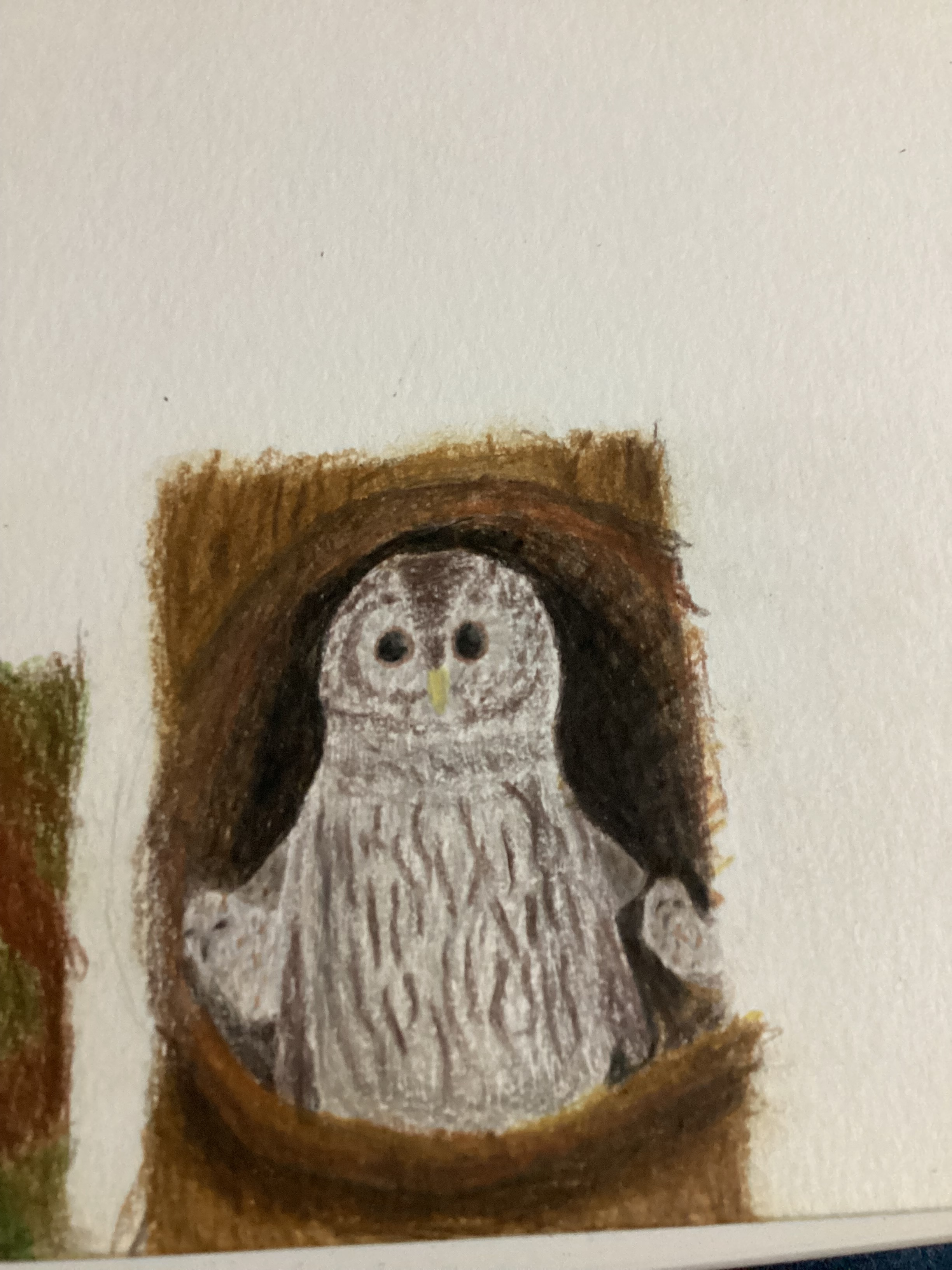 beim Kauz ist mir noch eingefallen, dass die Baumhöhlenöffnung noch etwas sehr gleichmäßig ist.