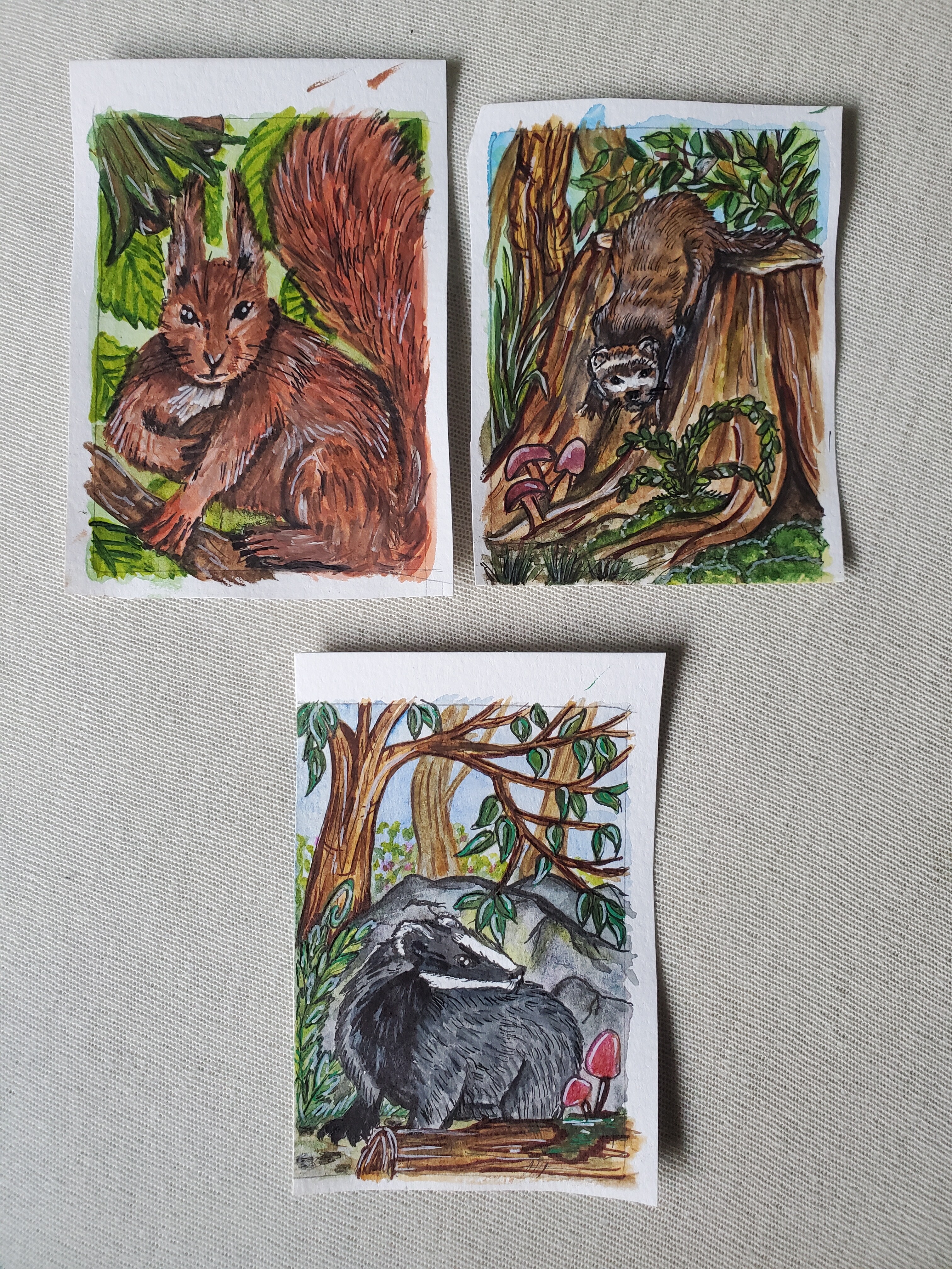 Konnte bisher an beiden nur sehr minimal arbeiten und habe bisher das Gefühl, es sieht auf den Fotos nur noch schlimmer als vorher aus. Die Kauz Karte muss natürlich noch komplett überarbeitet werden, dass sieht man auch in echt, aber bei den Mäusen wirkt es auf Fotos einfach wie eine einheitliche Maße und ich weiß nicht wieso. Arbeite aber auch da weiter dran.