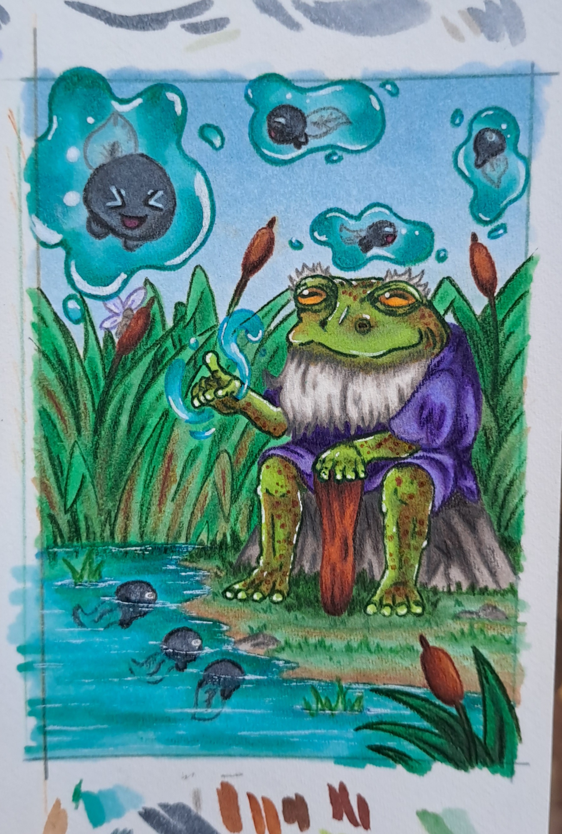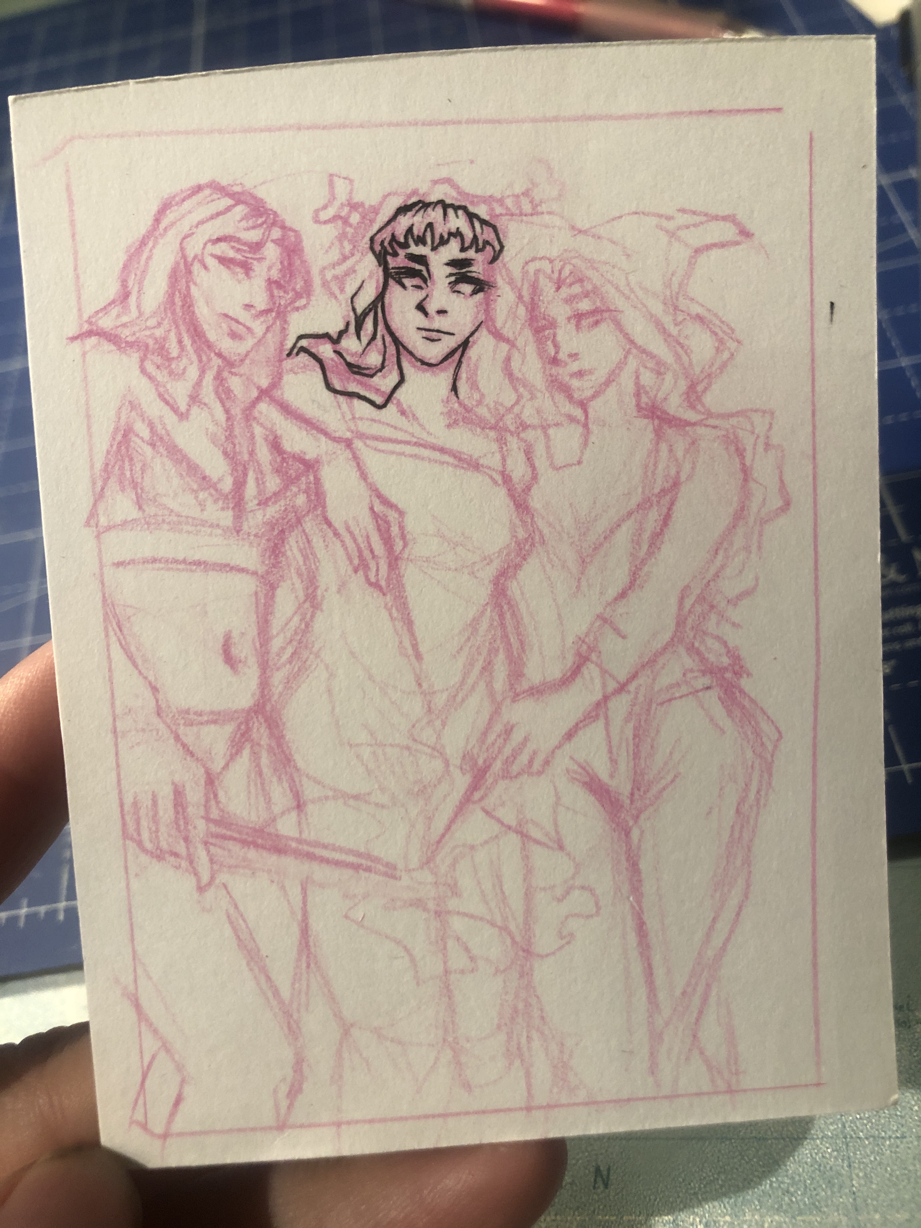 Das wäre meine Skizze für eine zweite Karte. Nach der Half-Body Karte wollte ich mal zur Abwechslung mehr Körper zeigen. Die linke Dame bekommt noch Kleidung aber leider war jetzt meine Bleistiftmine leer ;)