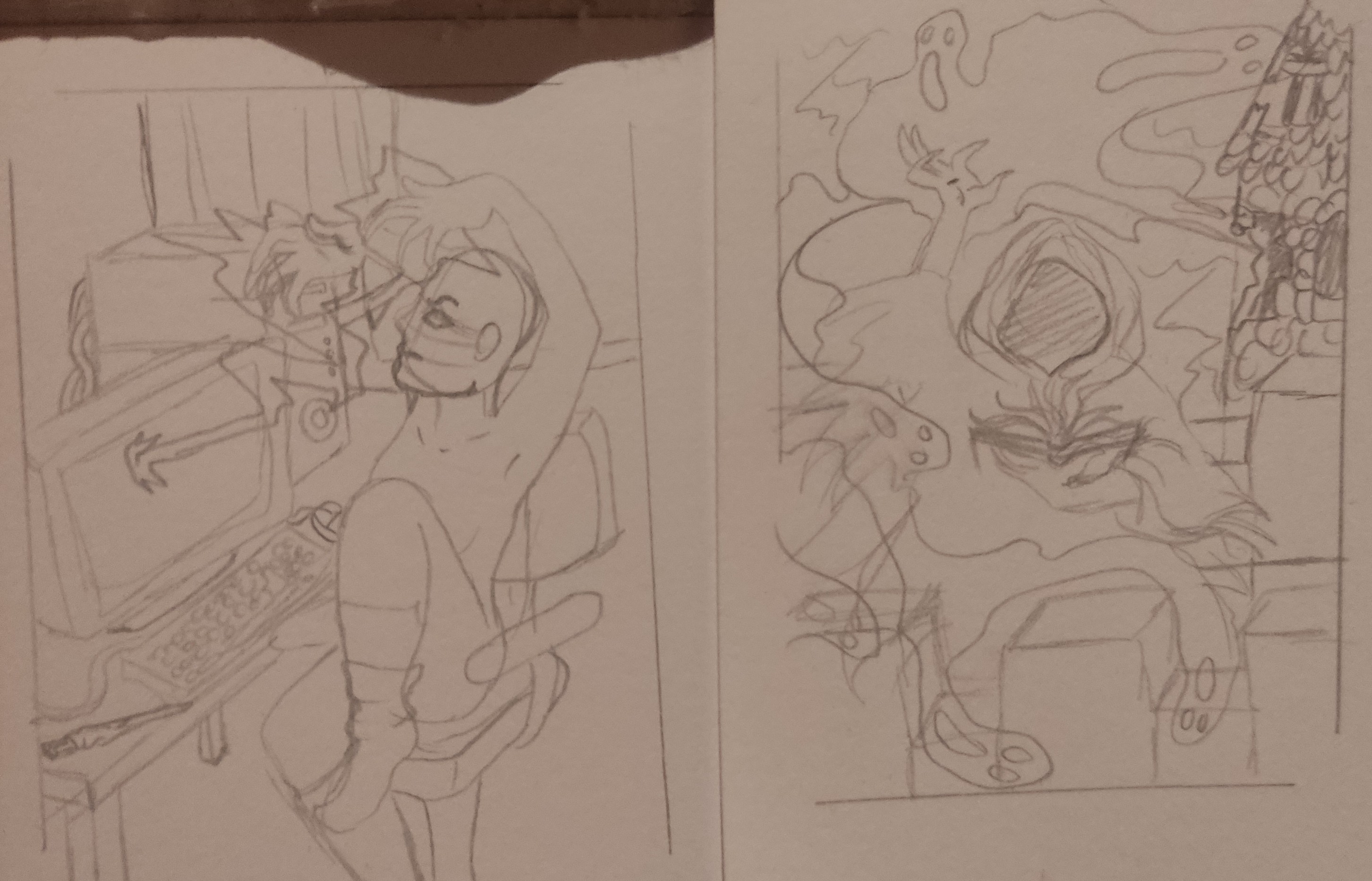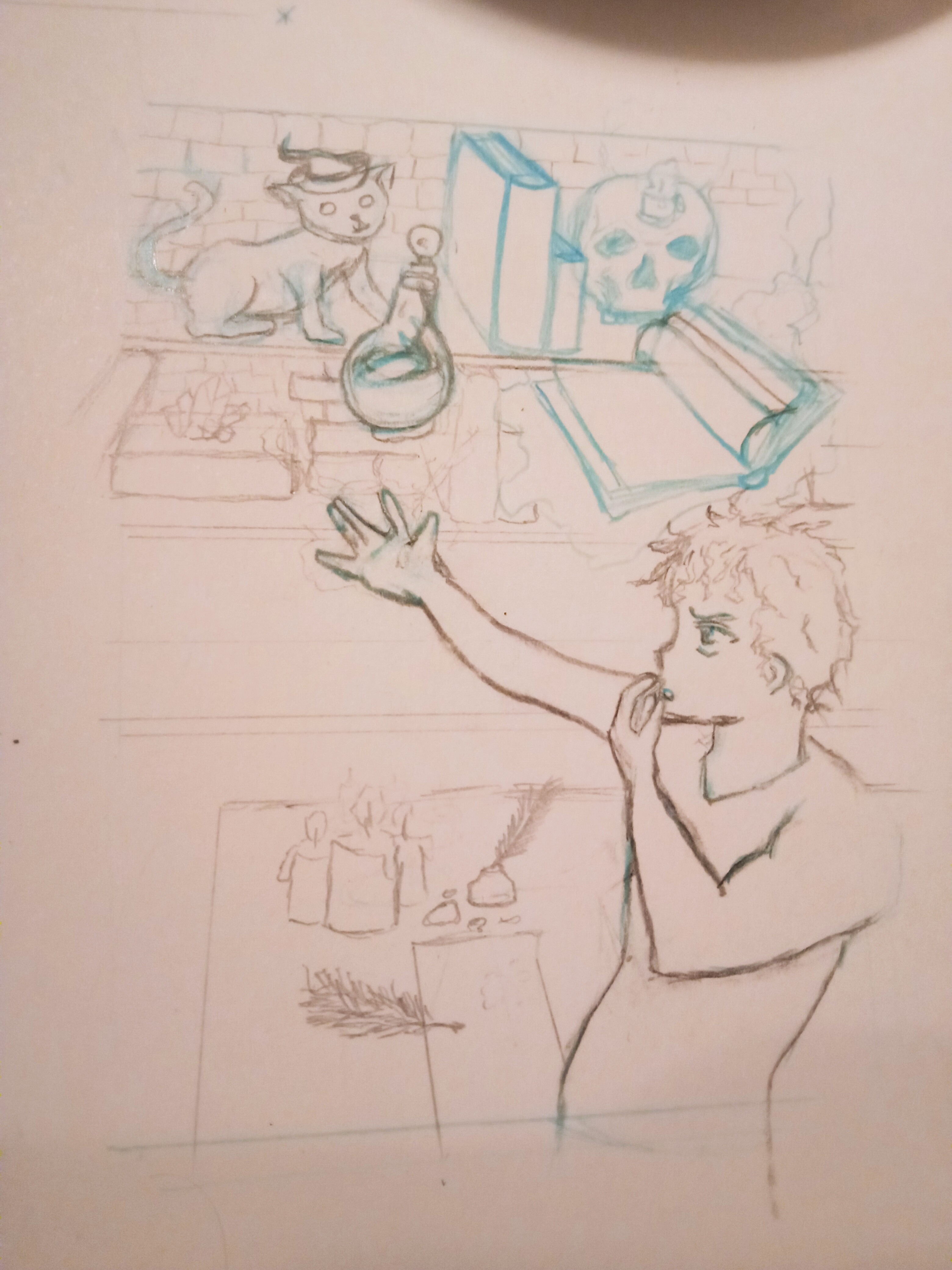 Bin Grade erst Teil der sta geworden hätte da aber schon zwei Skizzen . Ein Nekromant beim zaubern und eine moderne Hexe die einen PC Zauber wirkt