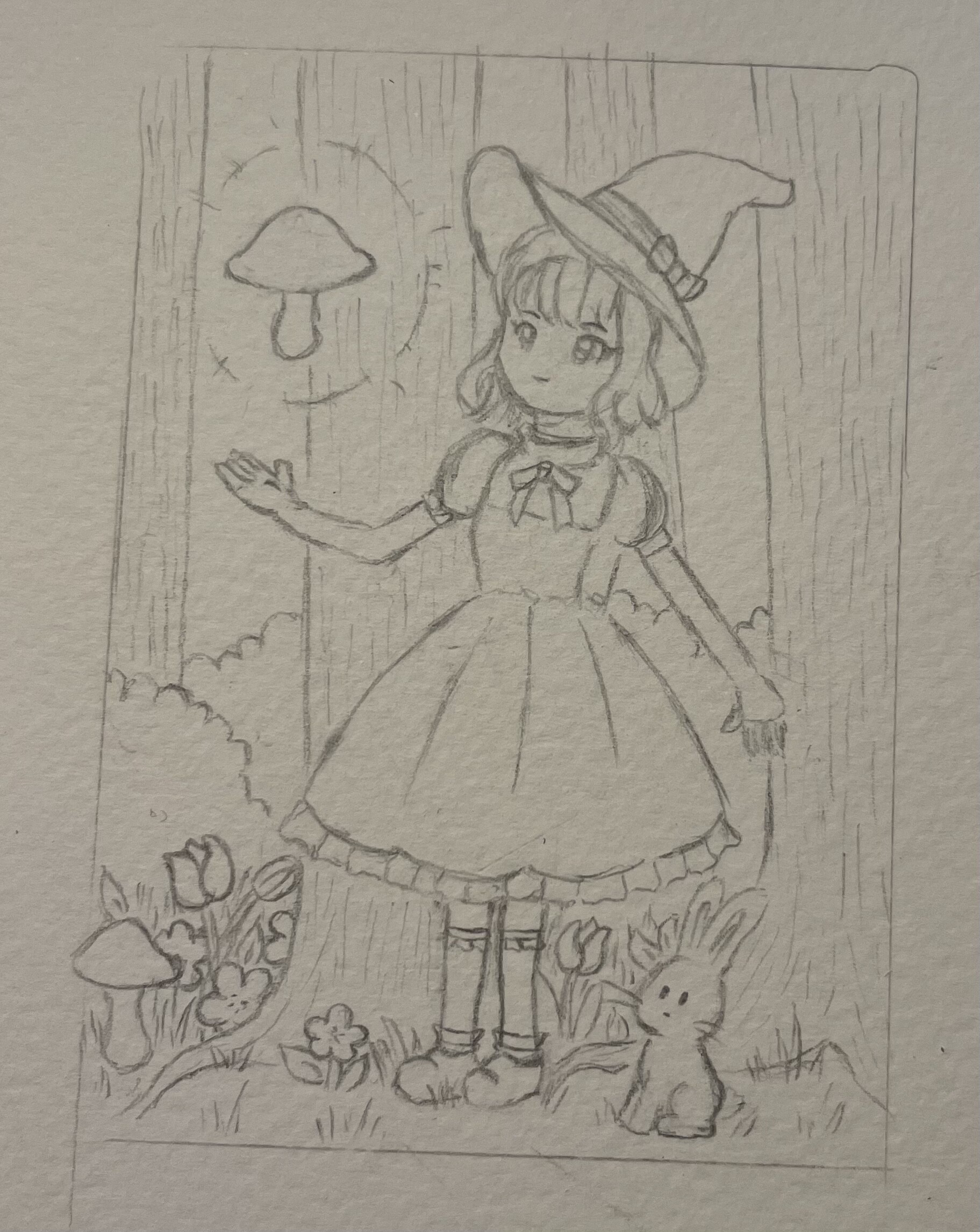 Eine kleine Hexe mit ihrem Kaninchen im magischen Wald :)