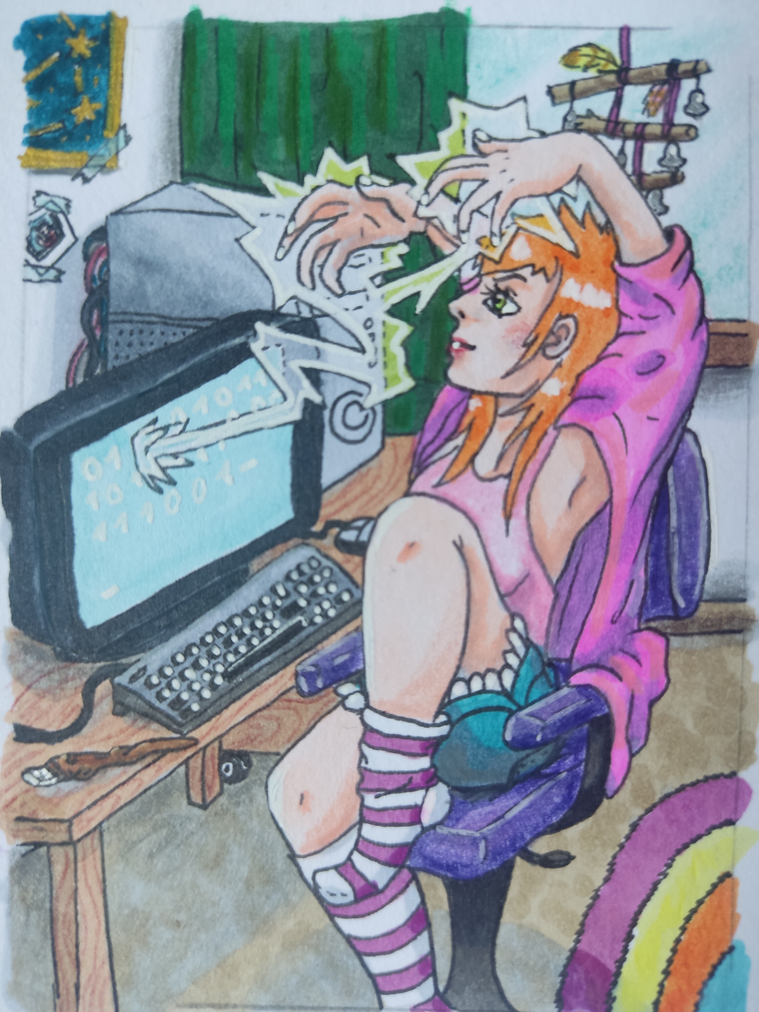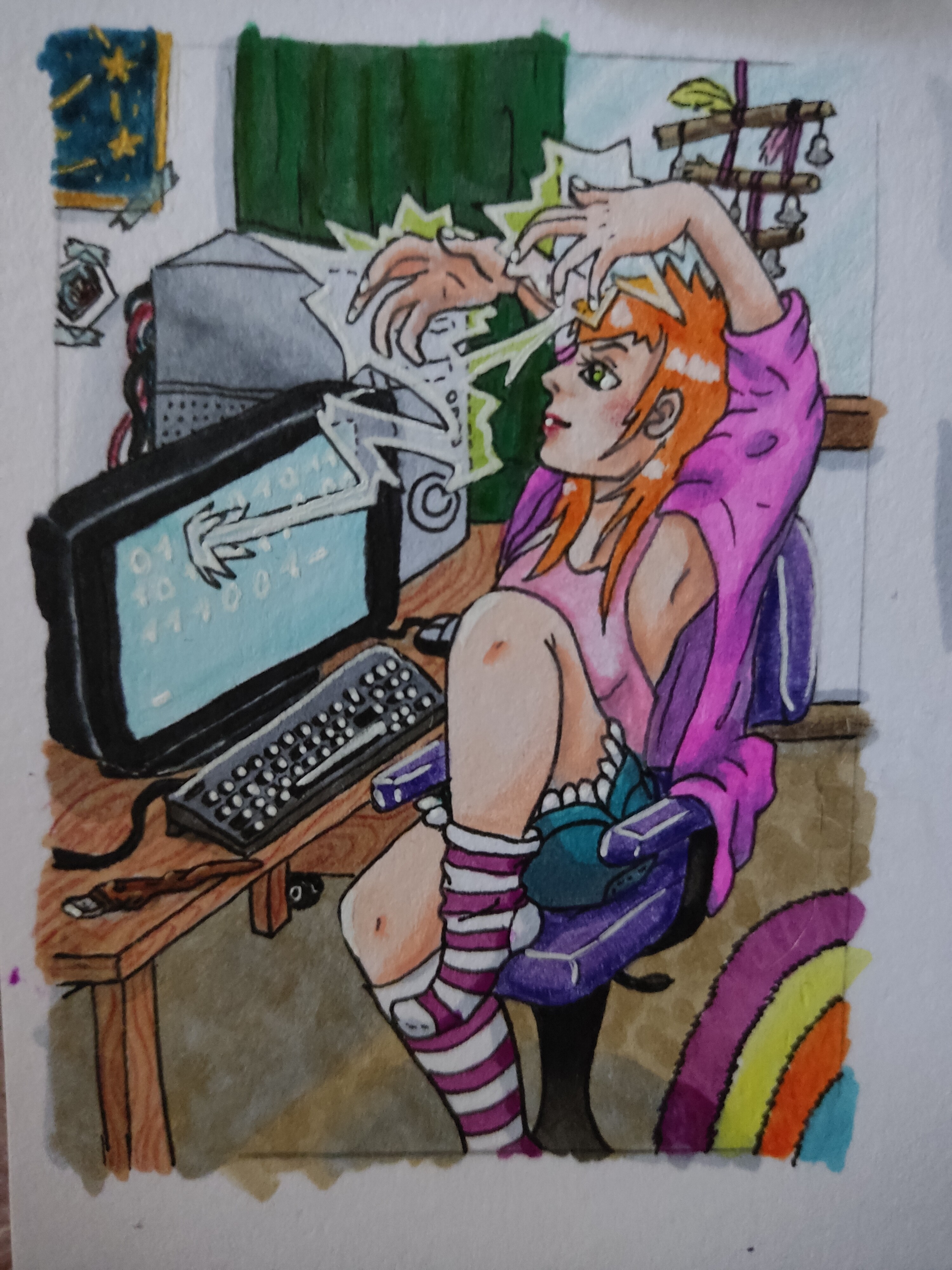 Hab jetzt die colo für meine Tech-Hexe angefangen. Bis jetzt bin ich ganz zu Frieden bin mir aber nicht sicher ob ich den Zauber nicht doch farblich machen soll oder ihn farblos lassen soll.