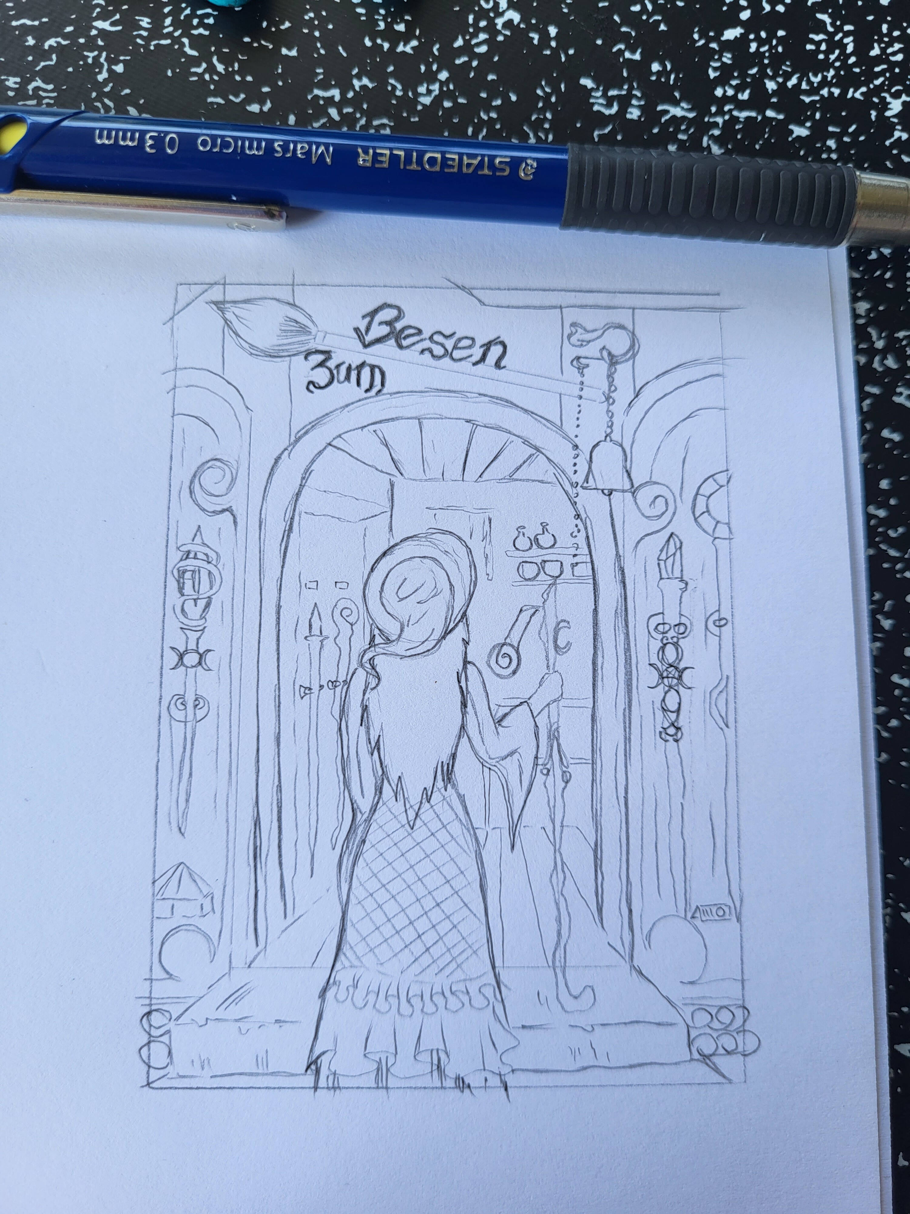 @Eleisis: Sehr schöne Idee und Skizze! Das Schild “Zum Besen” würde ich aber vielleicht nochmal ändern, weil die Leserichtung so ein bisschen komisch ist. Ich hätte erstmal “Besen zum” gelesen in der Reihenfolge