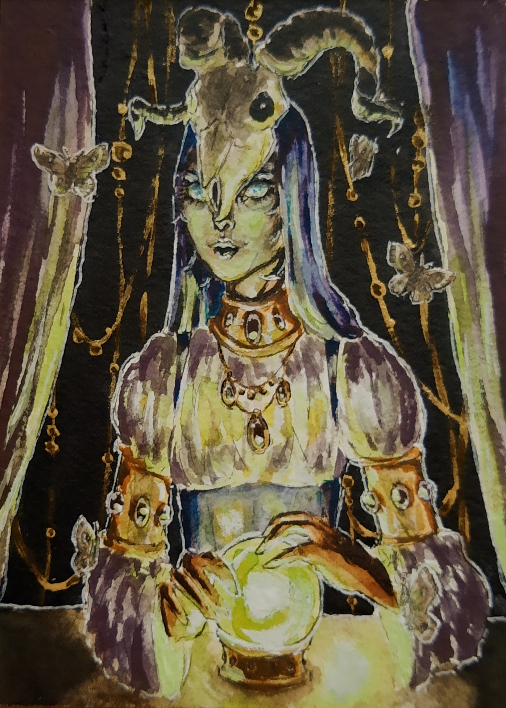 Ich habe zwei Ideen, für meine letzten Kakao-Karte und zwar: würde ich gern entweder eine Hexe im Galaxie oder ein chinesische Magier, der Zombie beschwört aber ich kann mich nicht entscheiden ^^:
