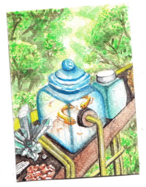 Bei der ersten Karte wurde jemand in einem Spiegel gefangen, die zweite Karte ist ein Buddelschiff, und die dritte Karte soll eine gläserner Teepot (und Teetassen) werden mit blühendem Tee drin ^^"
