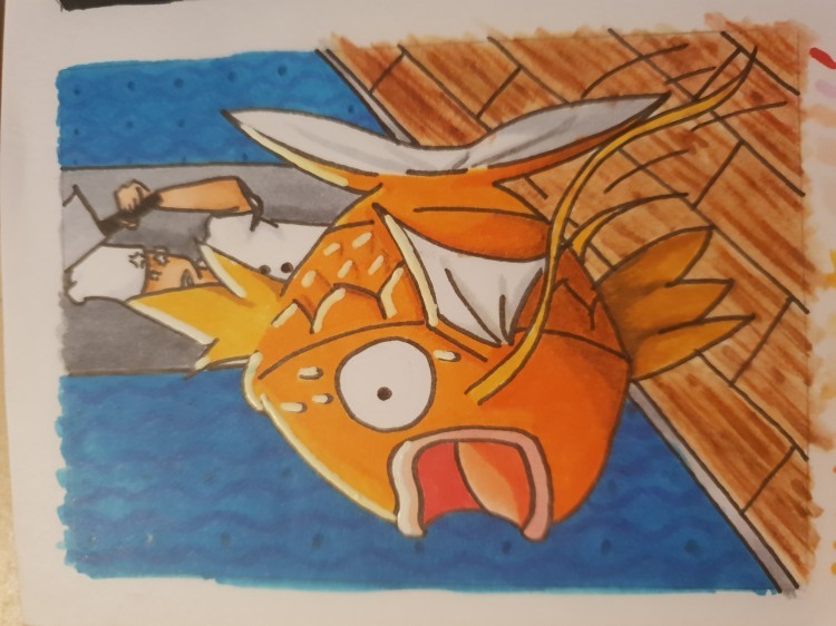 @absol: Danke! :D Am Anfang wollt ich ja einfach nur einen dieser Angler mit ihren 6 Lv. 5 Karpadors darstellen, aber nachdem die Skizze dann eh ne Weile rumlag ist mir die Idee mit dem Schiebeeffekt gekommen. Freut mich, dass dir die Idee gefällt. :)
