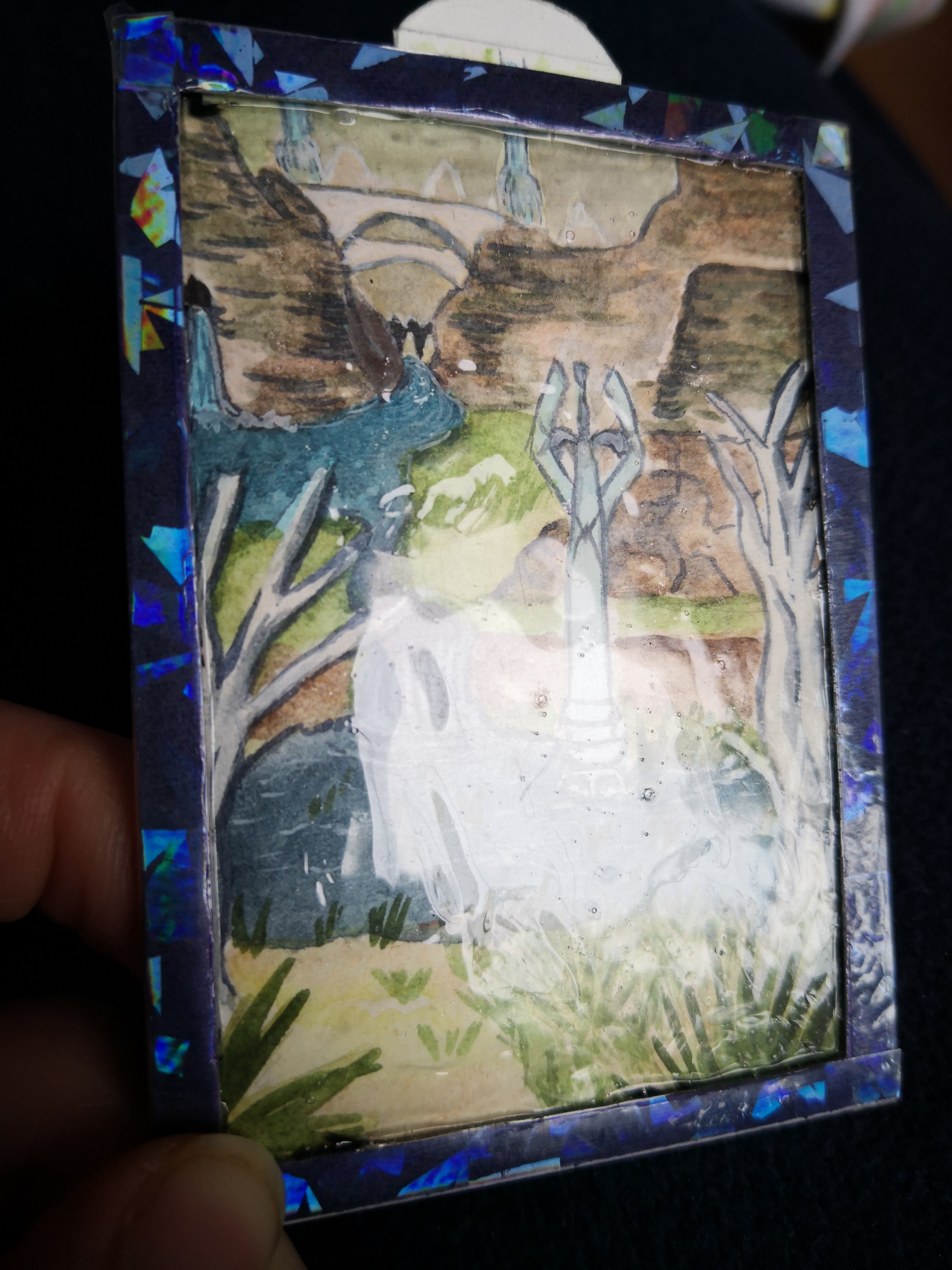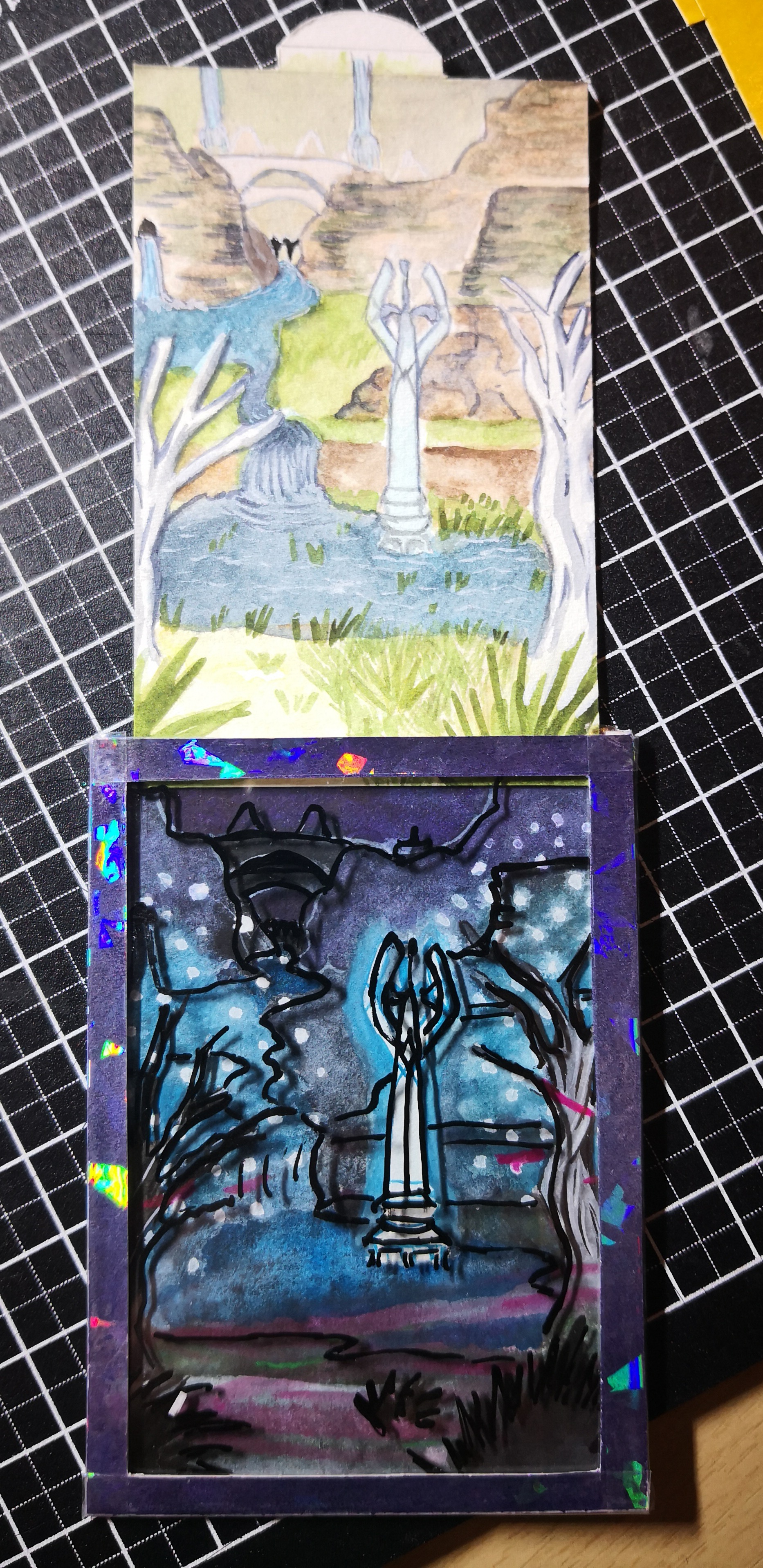 Beim zusammenbauen hat es sich leider leicht verschoben, aber ich denke es sieht trotzdem nicht schlecht aus. Sollte es so nicht passen, schneide ich die Nachtkarte aus und reiche sie allein ein.