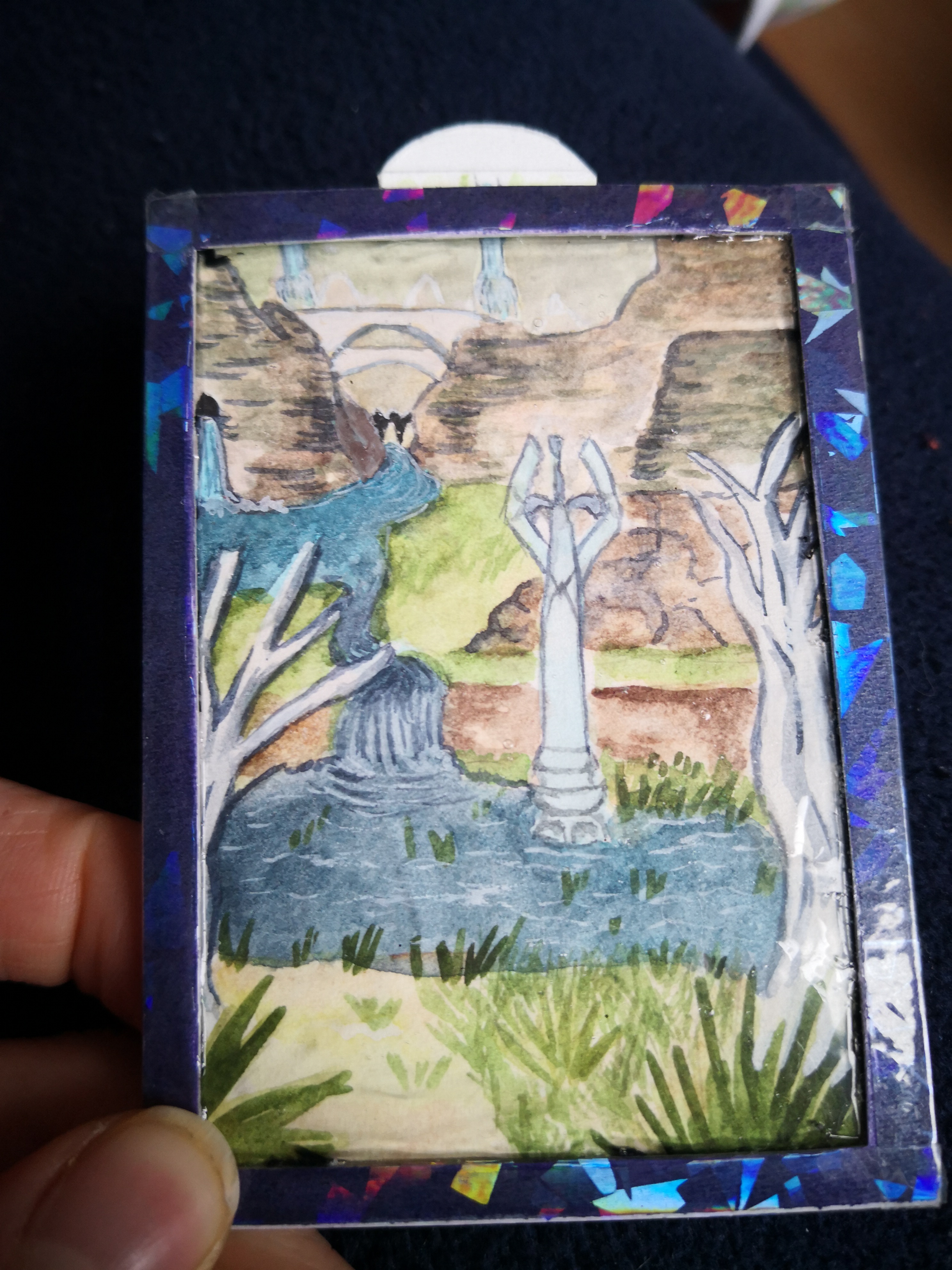 @Calyses: meine unqualifizierte Meinung ist, dass die Tagversion im Vergleich zur Nachtkarte etwas erblasst. Die hätte ich persönlich auch kräftiger koloriert. Ich dachte, ich sag’s jetzt gleich, denn das wäre so eine konstruktive Kritik, die ich normalerweise im Kommentar äußern würde, aber da wäre es in jedem Fall zu spät, deswegen mach ich das einfach mal jetzt schon. Die Nachtversion sieht echt schön aus, auch mit dem Rahmen, der passt da sehr gut. Bei der Tagkarte wirkt er hingegen ziemlich penetrant, eben weil sie so blass koloriert ist. Und mit der Koloration könntest du vllt auch das “Verschobene” ein bisschen kaschieren (wobei mir das gar nicht so aufgefallen wäre, hättest du nichts gesagt). Aber es ist deine Karte, mach wie du denkst ^^ LG