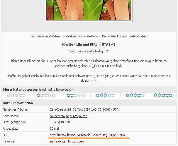 Aber auch bei dir: Bitte das nächste Mal alle deine Bilder einzeln mit dem jeweiligen Link, wie oben beo CakeCream beschrieben, verlinken und nicht einfach nen Link zu deiner Gallerie setzen, das macht nur unnötige Such-Arbeit. ;D