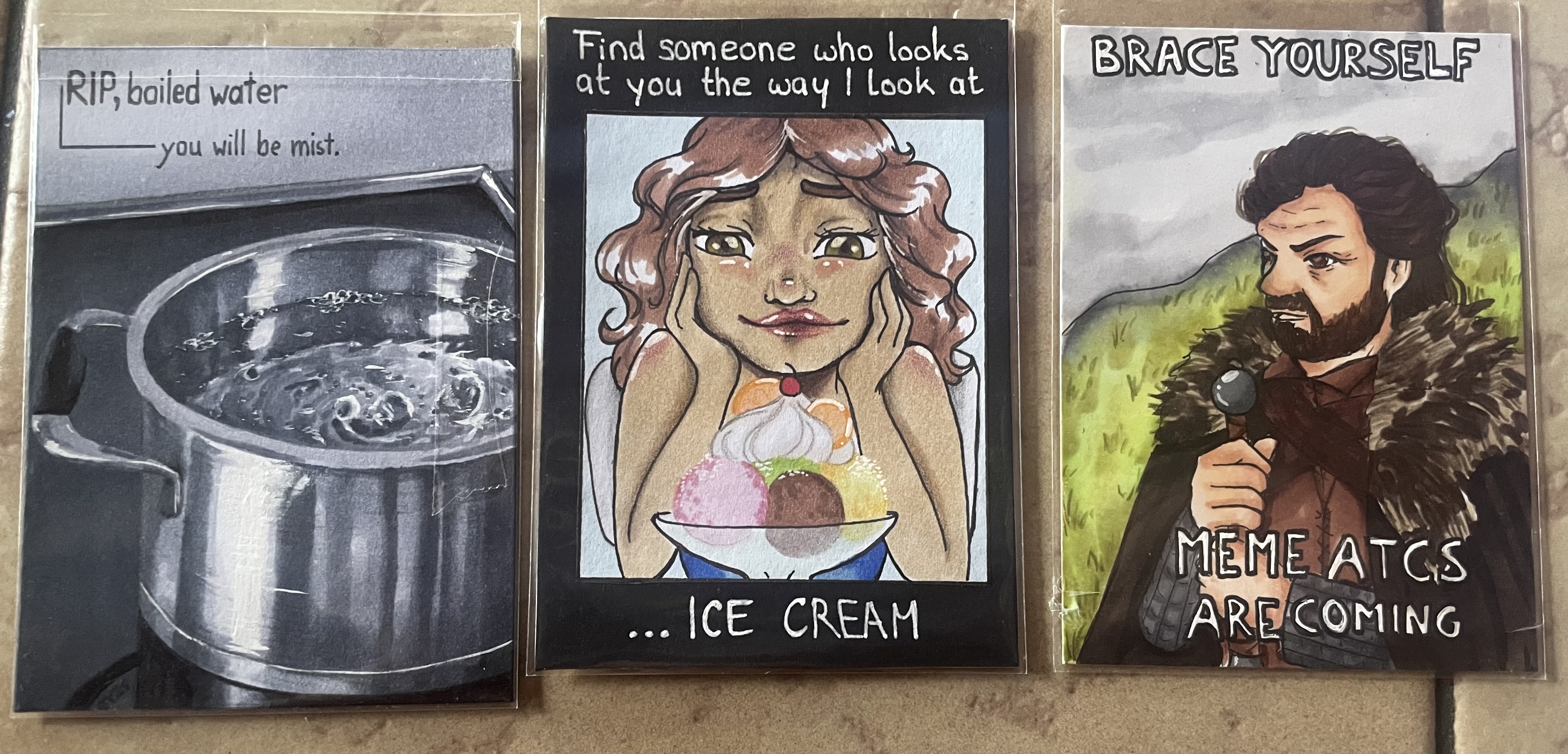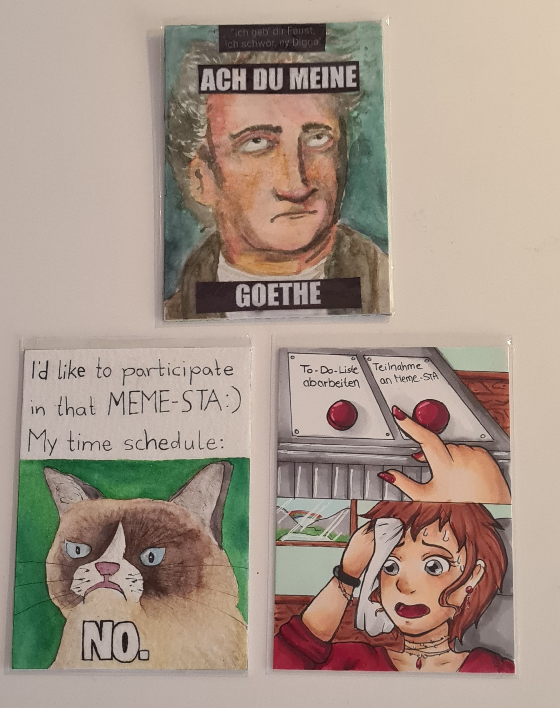 Diese beiden wundervoll gestalteten Meme-Karten haben mich erreicht und ich bin super duper happy damit. <3