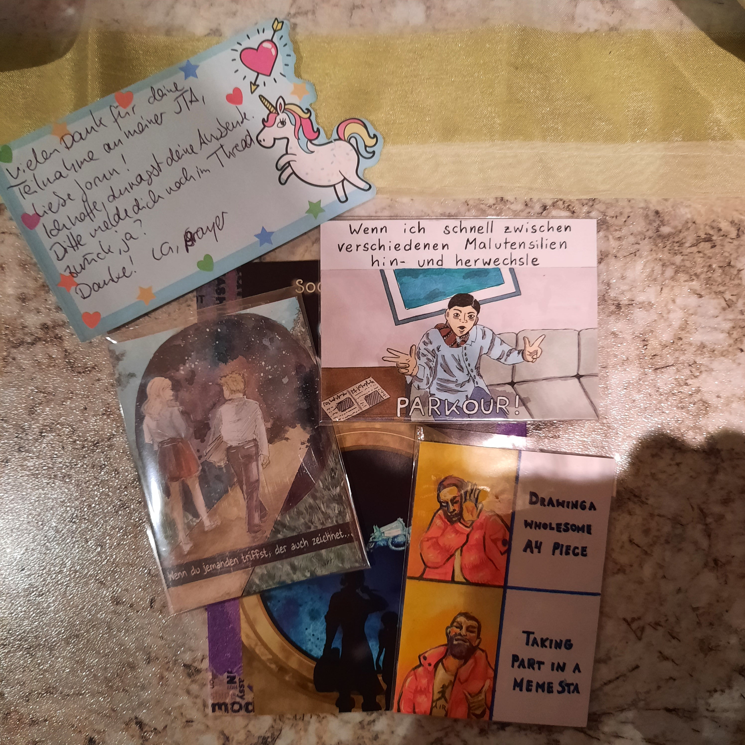 Hallöchen, mein Brief ist gerade angekommen! ^^ Dabei waren die schönen Kärtchen „I said…“ von @Jorun und „disaster Girl“ von @bychan <3333 vielen Dank an die beiden tollen Künstler (die Karten sind echt genial XD) und an @prayer_at_night für die wunderbare Leitung der witzigen Aktion :D