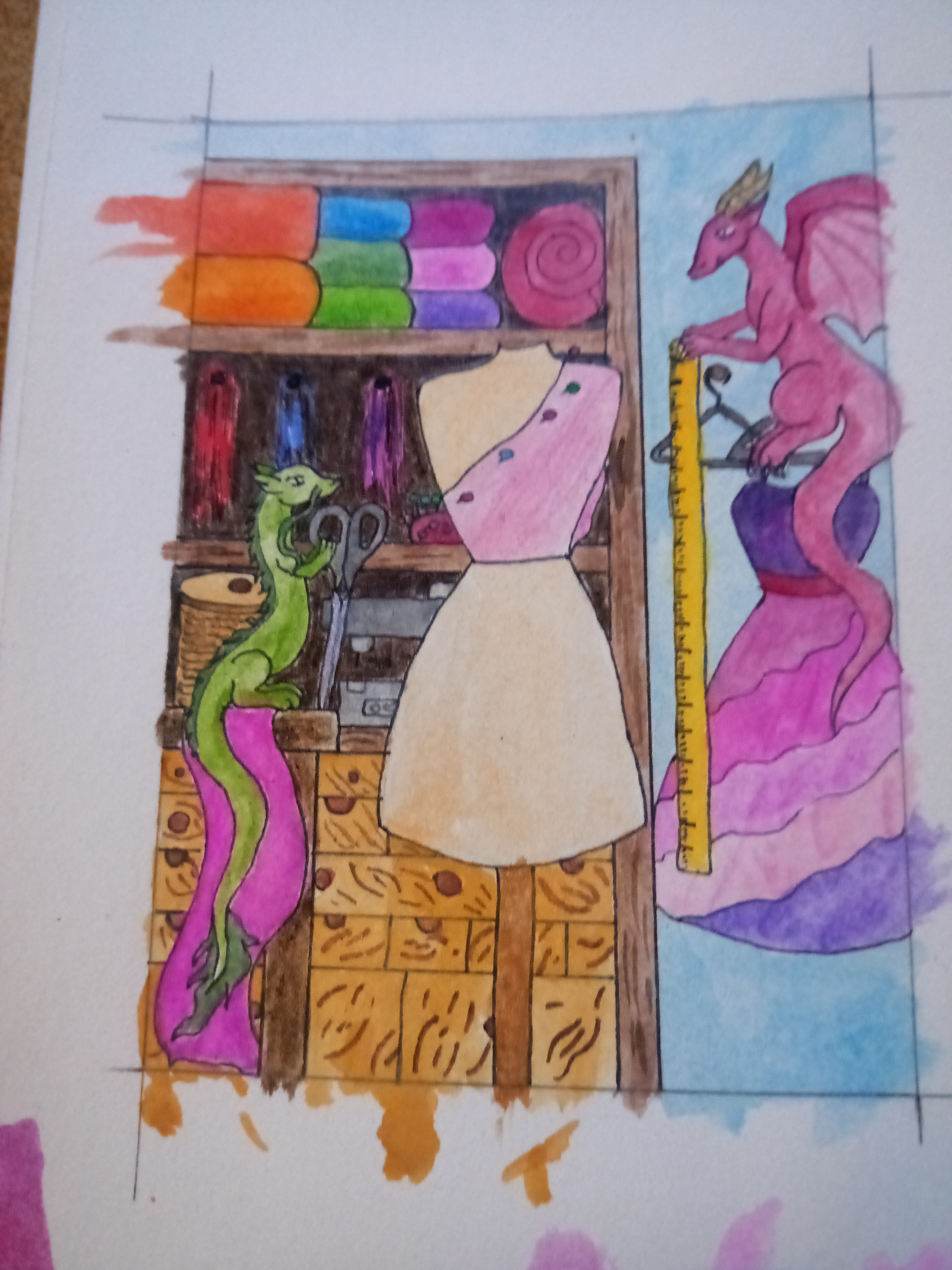 @Sarah24 : Sehr niedliche Karten <3 Die Schneiderdrachen sind auf jeden Fall OK, da ist ja schon so viel los, bei der Karte mit dem Tisch ist es ähnlich wie bei Stabilos Karte: Wäre es vielleicht möglich, an der Wand noch leichte Schatten oder etwas Struktur einzubringen? Da die Fläche relativ viel Platz auf der Karte einnimmt wirkt das so ein wenig platt. Auf die dritte Karte freue ich mich schon sehr, die Lines sind schon so lebendig <3
