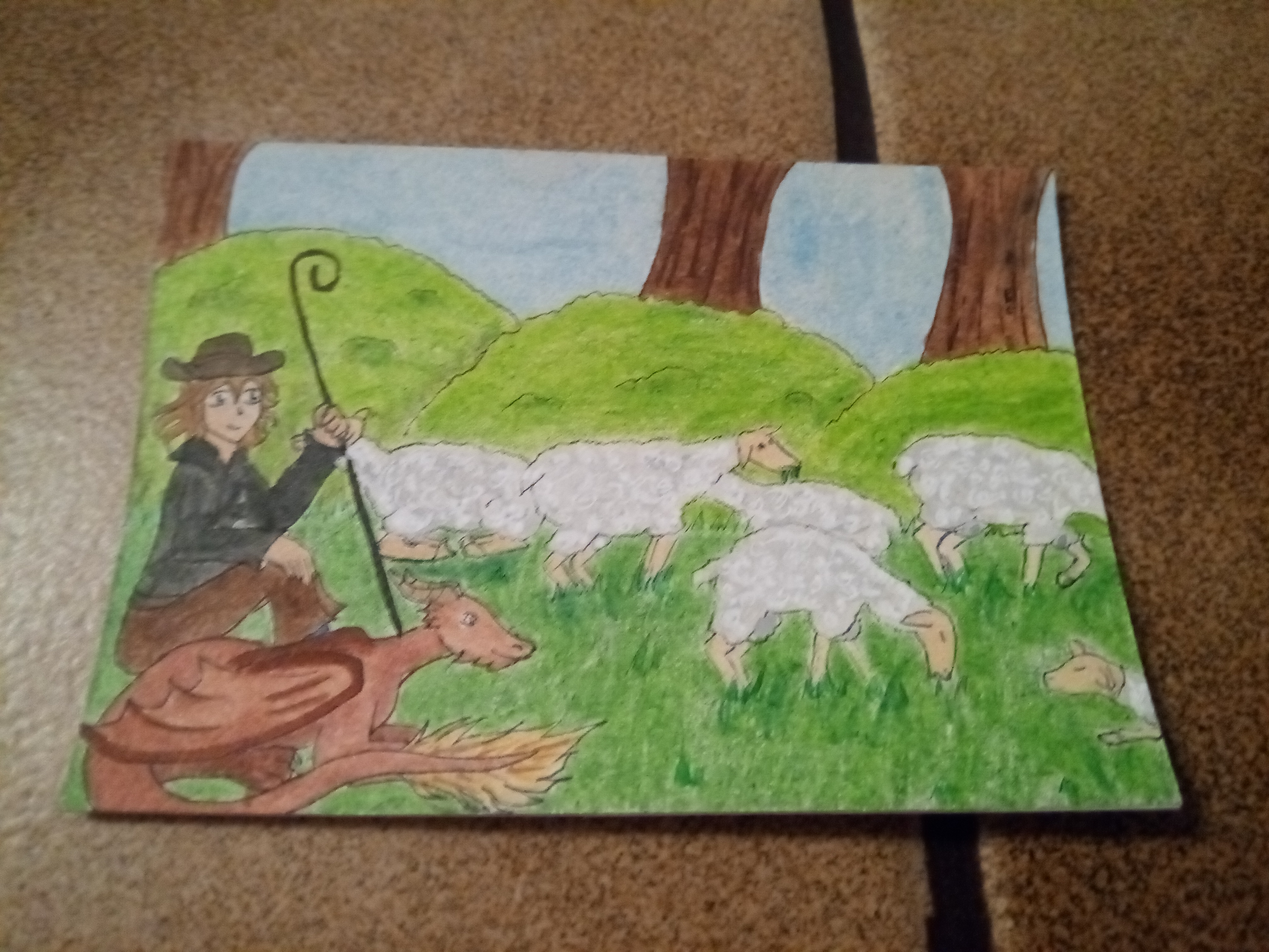 Ich habe meine letzte Karte nun noch einmal überarbeitet und merkwürdigerweise ist auch die generelle Scan Qualität gestiegen. Der Vogel ist vielleicht ein bisschen unproportionale groß, allerdings gibt es vielleicht in einer Welt mit Mini Drachen dafür besonders große Vögel. Die letzte und dritte Karte werde ich in ein paar Tagen hochladen, dann kann ich sie alle endlich losschicken