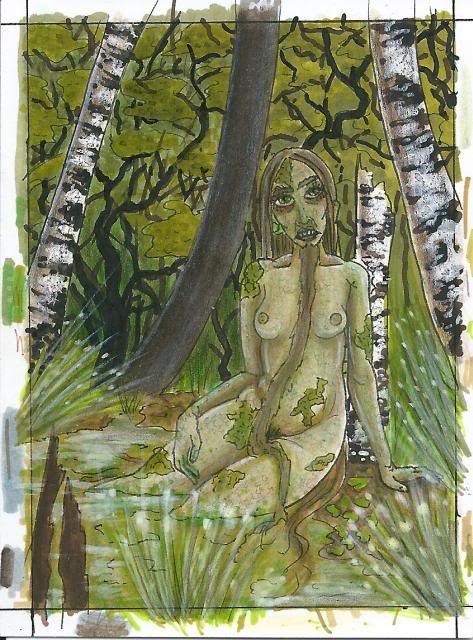 Die schnieke Else ist ein schuppiges, schleimiges, bärtiges und eigentlich hässlichen Wasserweib mit großen Augen und Zähnen aus der Wolfdietrich Sage… allerdings kann ich keine hässlichen… nennen wir sie ma Frau … malen, gnarf.