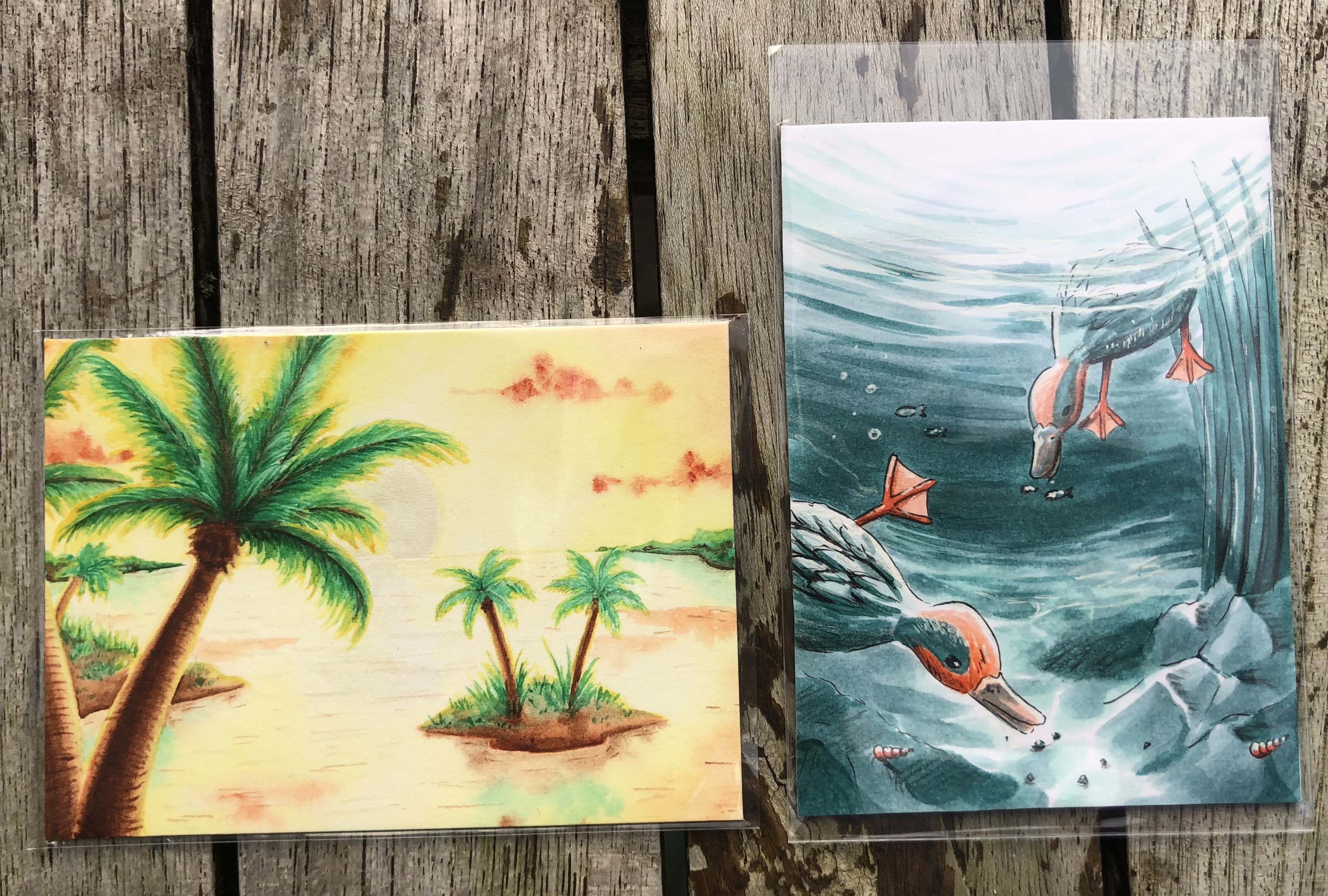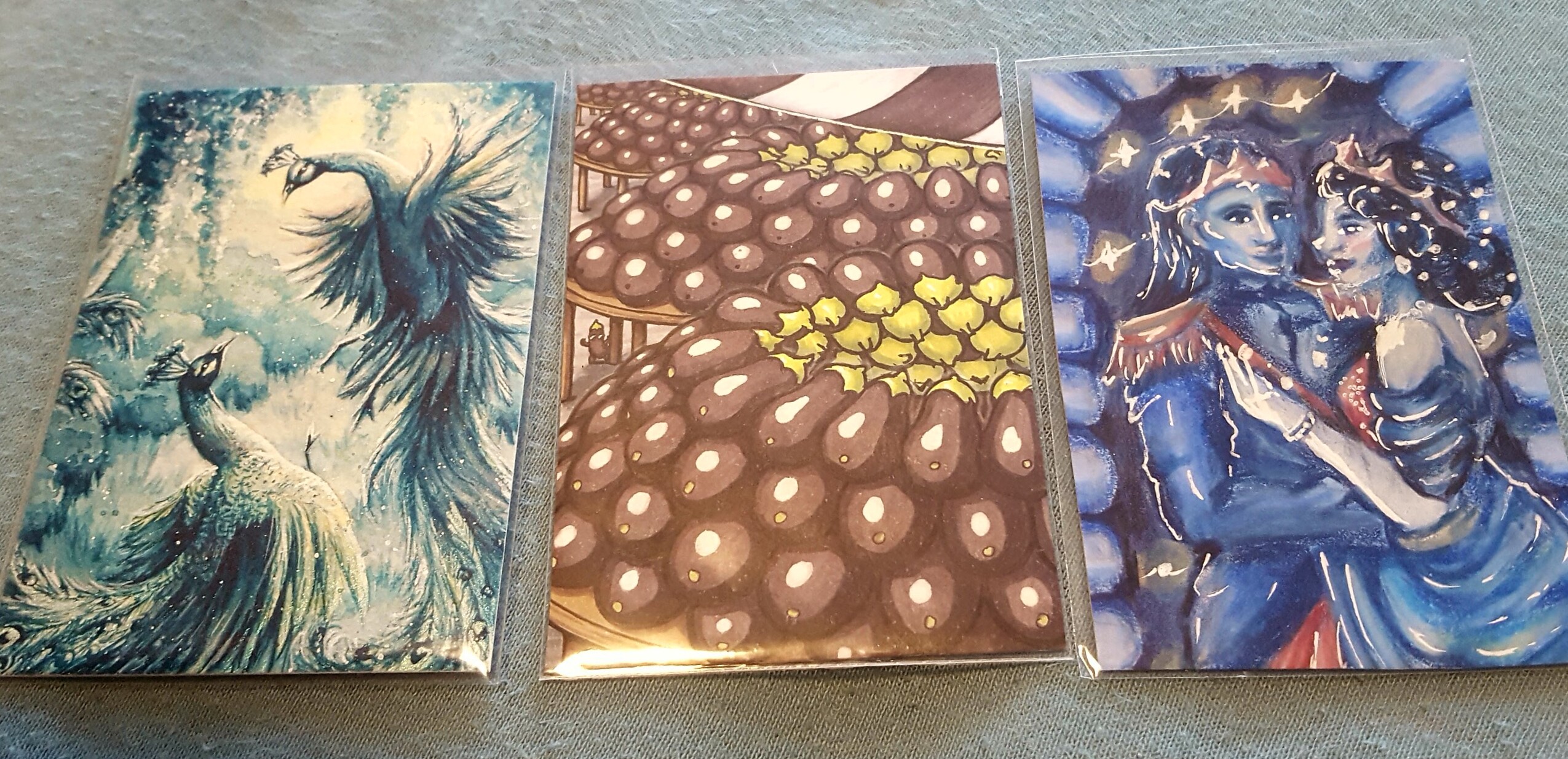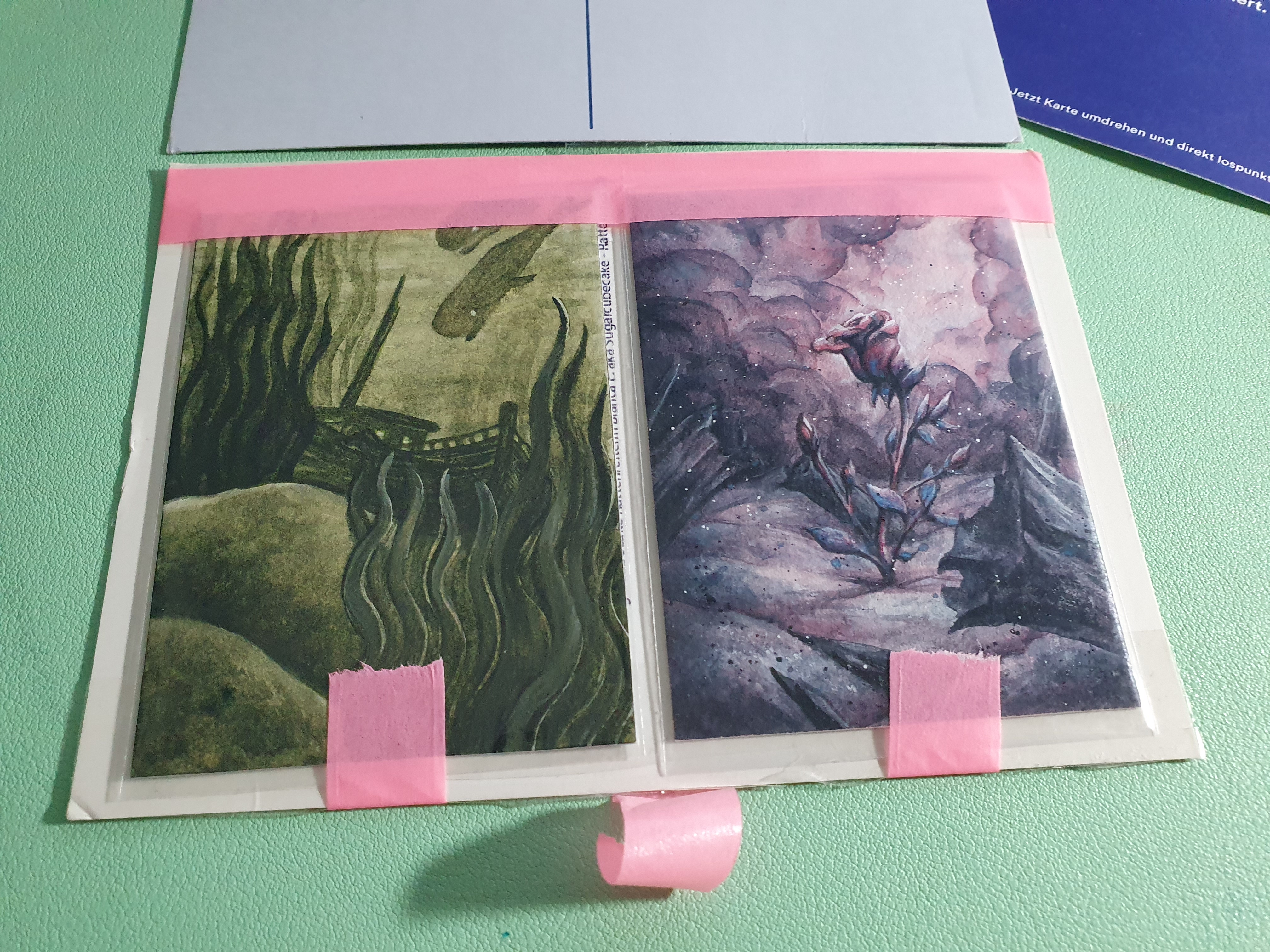 Seegrün von @Ismael (Boah, da war ich echt baff!! Völlig unerwartet noch einen zweiten dicken Liebling gekriegt - und sie ist in Echt nochmal so viel schöner! So glücklich, meine 1. Ismael-Karte :)