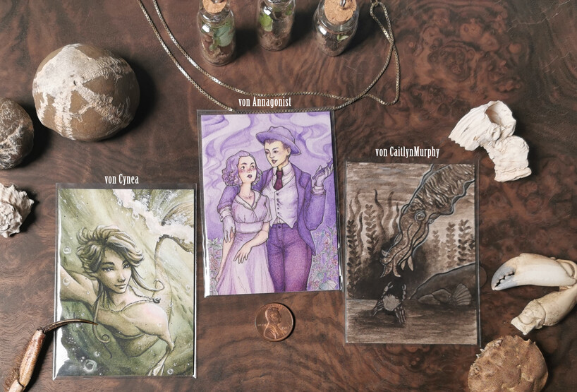 Wassertanz von @Annagonist : ich war schon von der Kraft der Skizze ungemein beeindruckt und das Original ist es noch einmal um einige Stufen mehr. Das Lineart ist so graphisch, die Übergänge der Anatomie zum Wasser sind klasse und die Perspektive pure Dynamik. Auch diese Karte ist ein absolutes Kleinod.