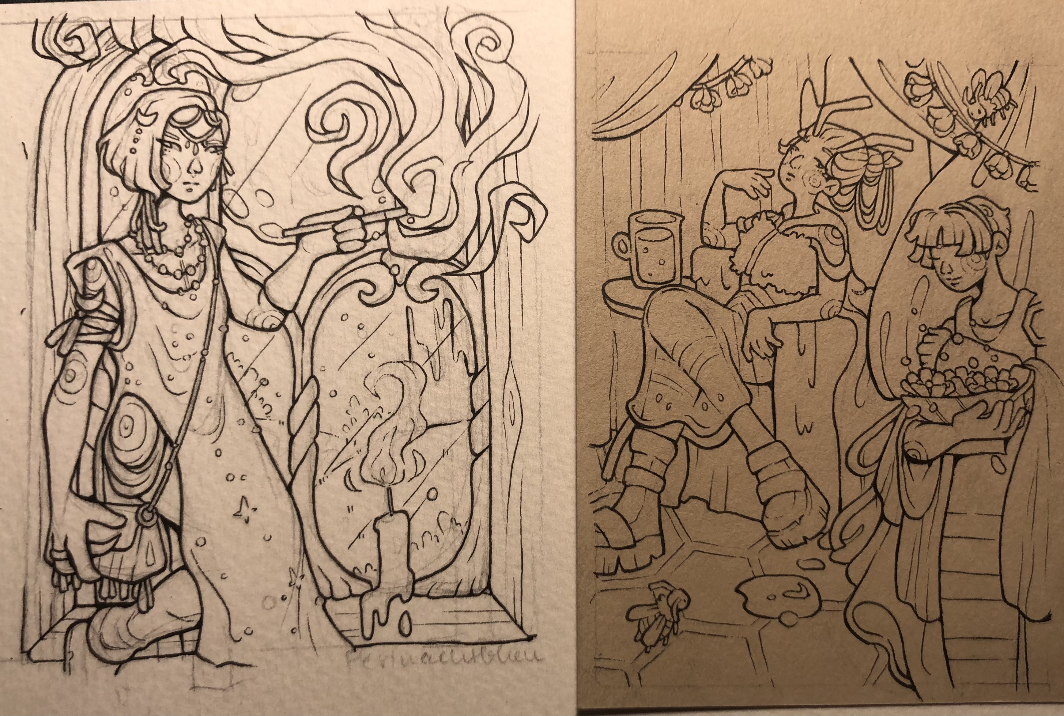 Ich habe mittlerweile zwei paar Lines fertig und wollte fragen, ob sie so in Ordnung wären. Beim Brainstorming bin ich nämlich Head-First in ein Character-Design-Loch gefallen und hoffe, sie sind noch farbspezifisch genug. Links Perlnachtblau, rechts Honiggelb/-gold ^^