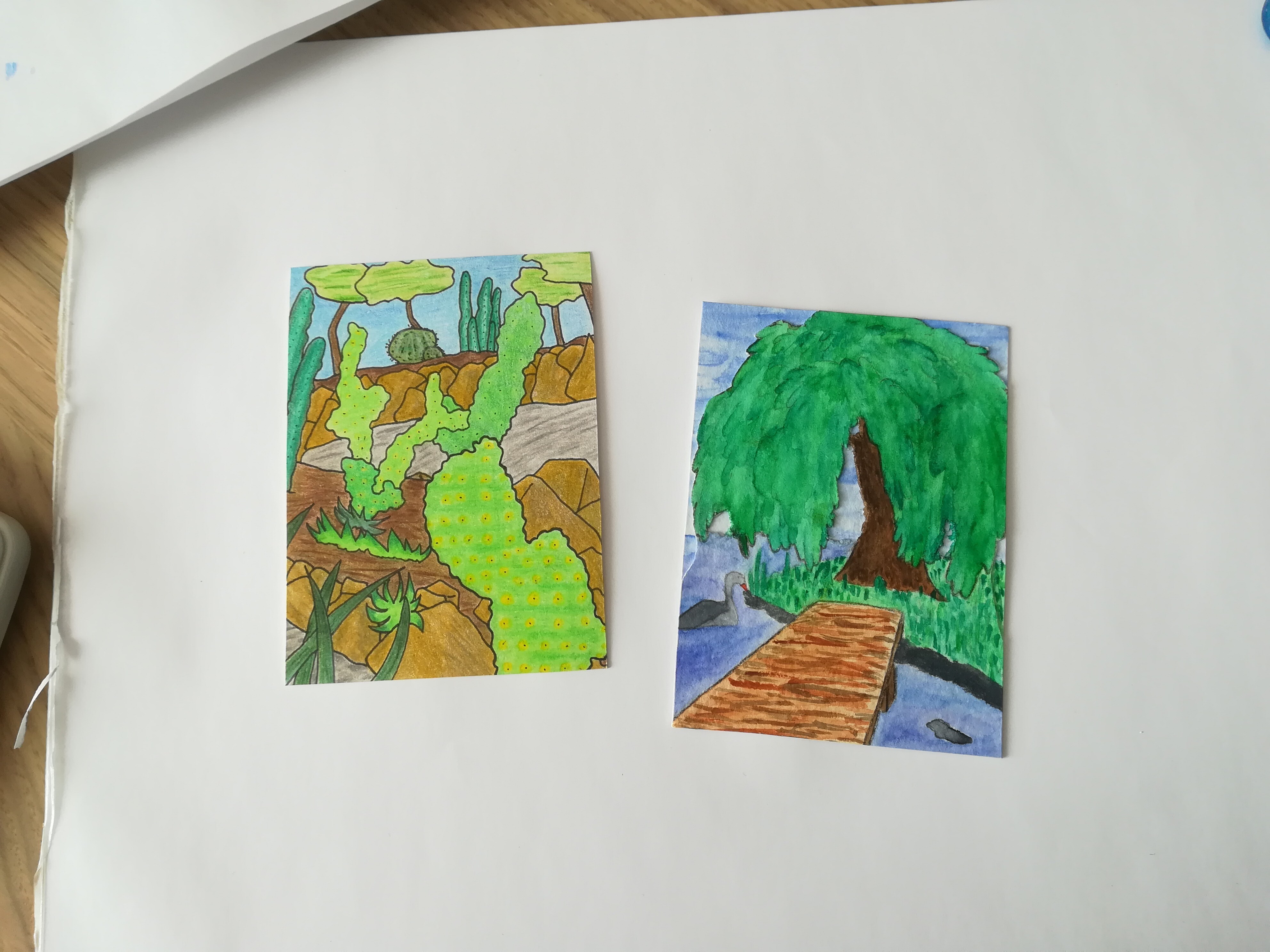Wenn meine Karten so okay sind würde ich die dann später hochladen und einreichen. Bei der Karte mit der Weide bin ich außerdem etwas bastlerisch tätig geworden, sodass die Karte quasi aus zwei Schichten besteht, was man hier leider nur an den rechten und linken Rändern der oberen Schicht sehen kann. Ich habe mich außerdem gegen die Laternen entscheiden, nachdem ein erster Versuch damit wirklich dazu geführt hat, dass der Baum nicht mehr im Mittelpunkt steht