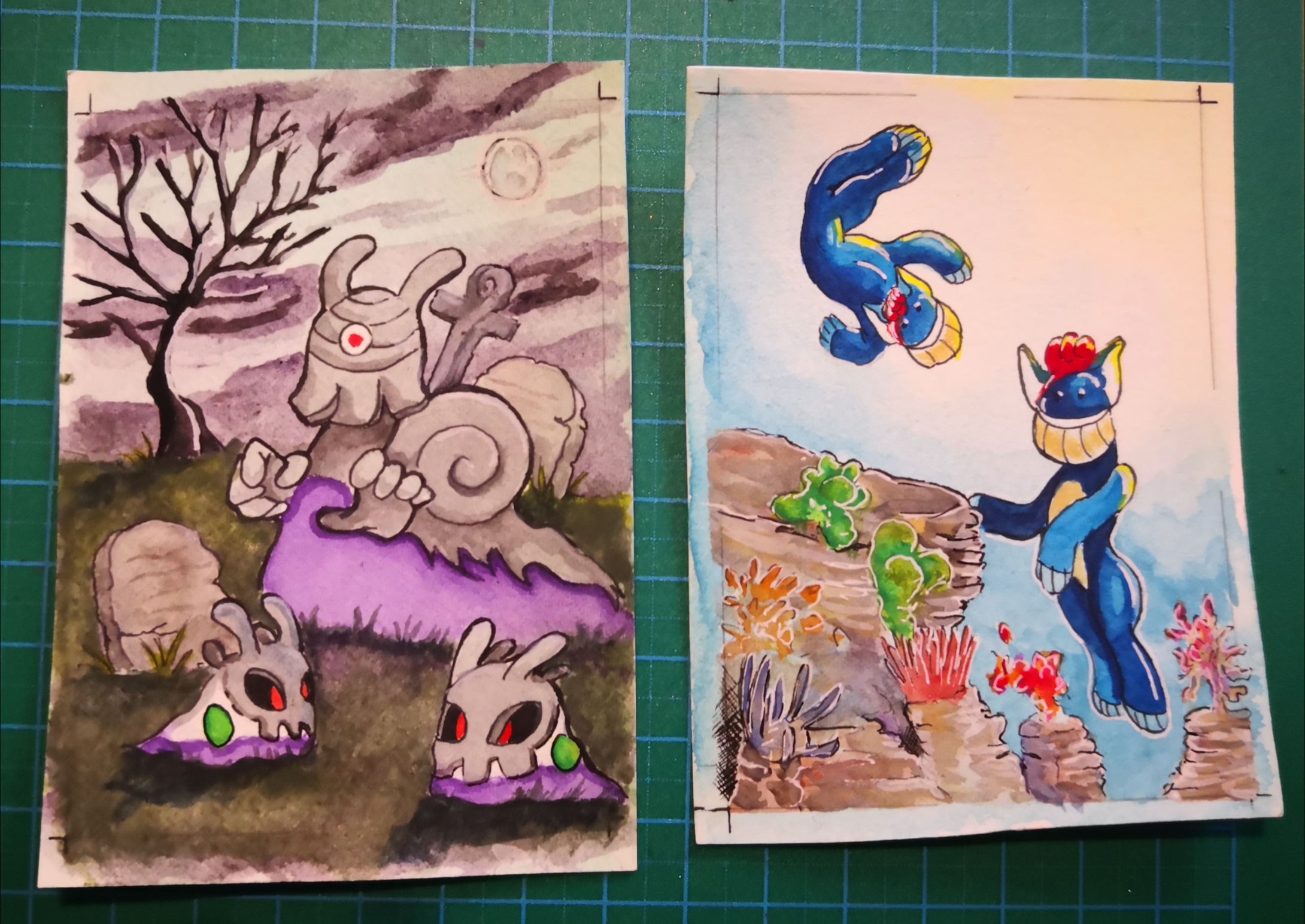 Ich arbeite gerade an Karte drei. Das Absol wehrt sich gerade noch Typ Fee zu werden, aber hier schonmal die beiden fertigen: