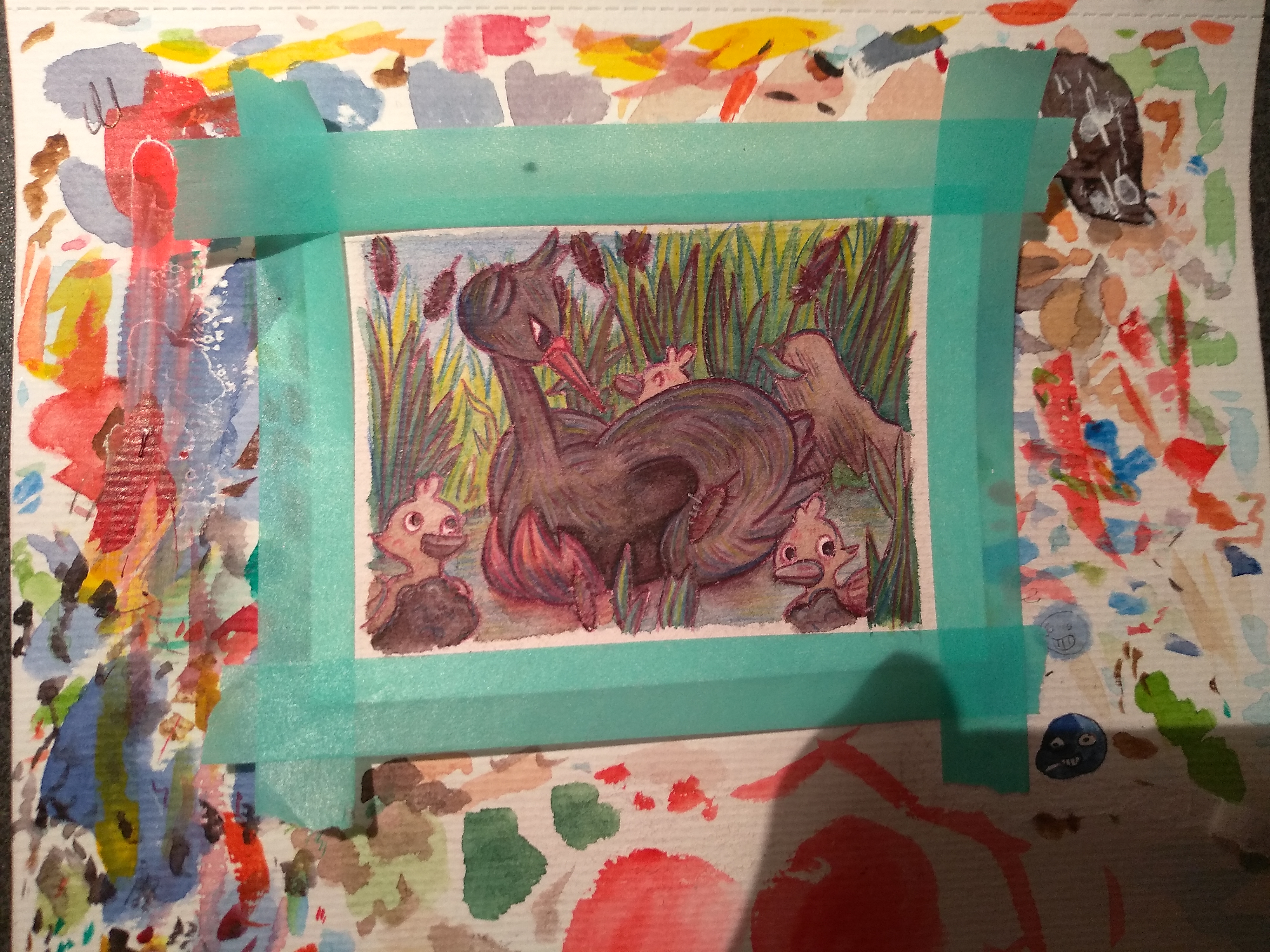 Das Papier hat sich als “nicht meins” entpuppt, ich wollte die Karte aber trotzdem fertigmachen. Das sind Swaroness und Piccolente in Trauerschwan-Optik. Ich weiß allerdings weder, ob der Stil so jemandem zusagt, noch ob die Karte so zugelassen wird. Falls sie nicht den Ansprüchen der Aktion entsprechen sollte, muss ich es dann doch bei zwei Karten belassen 🤷