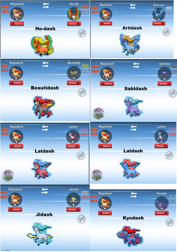 Ich bin unvernünftig und versuche mich an einer vierten Karte xD Habe ein bisschen mit dem Generator herumgespielt und inspirierende Fusionen erhalten, Gallopa und Dedenne eignen sich echt gut :D