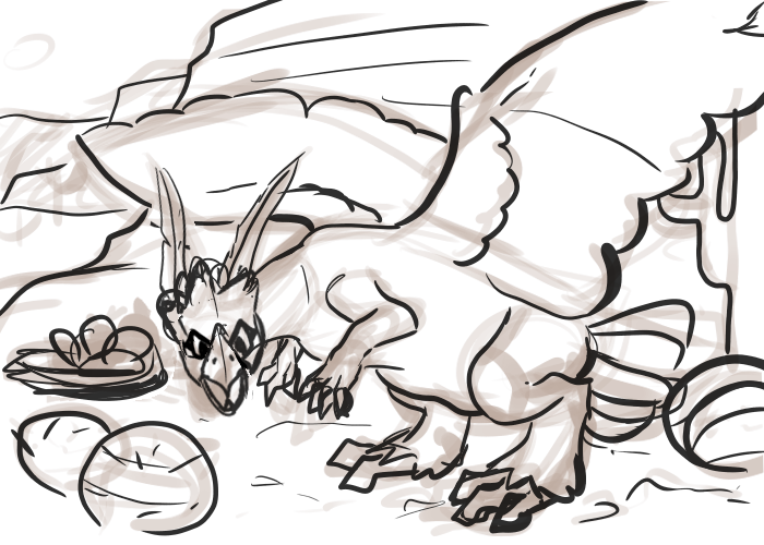 Weiter haben wir noch eine Skizze für die Braviary/Flygon-Fusion: