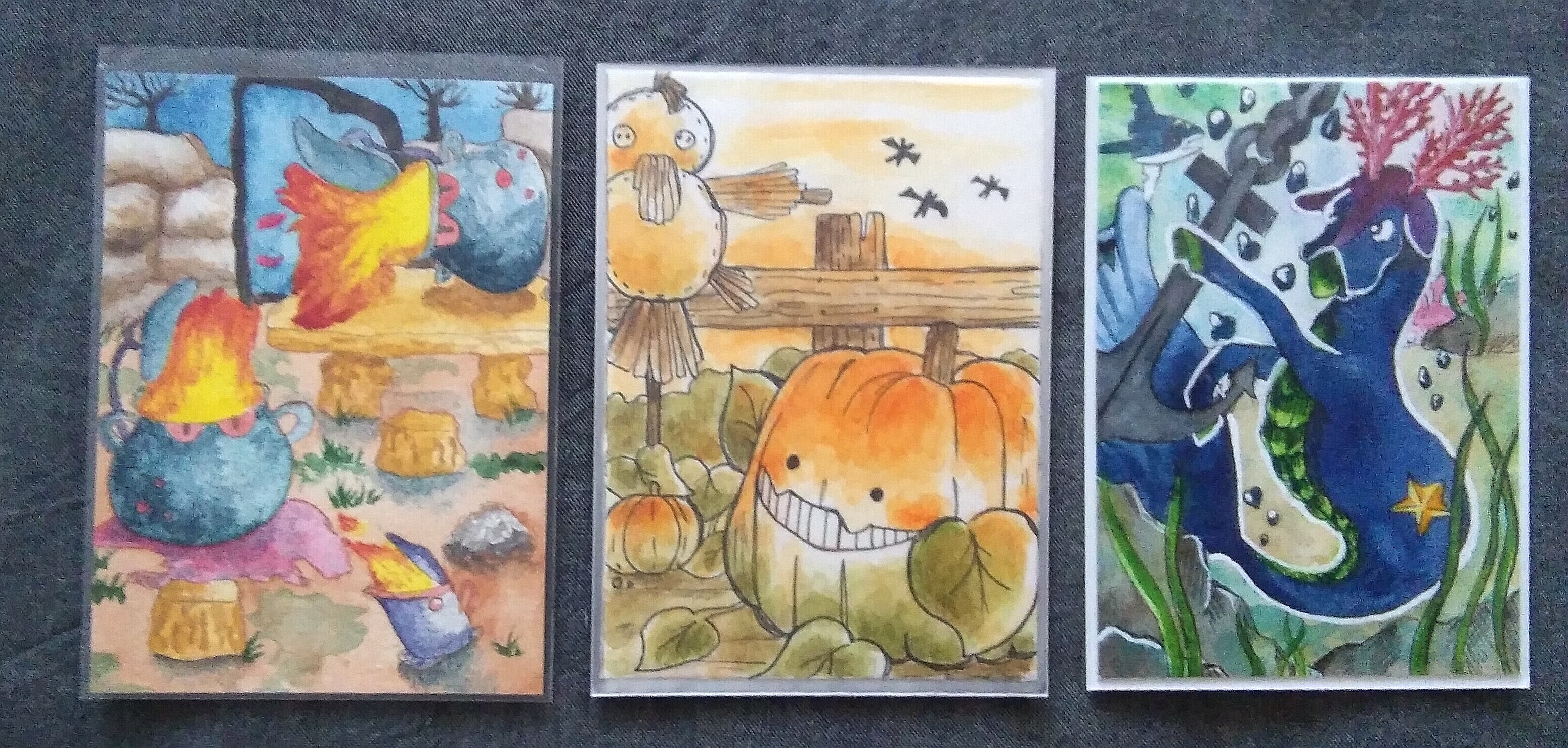 1158 Feuerspuckende Kessel von @Angelheard : ich hab fast damit gerechnet diese Karte zu bekommen und ich mag die kreative und völlige Neuinterpretation sehr. Tatsächlich tut der Scan der Originalkoloration ein bisschen Unrecht. In Natura gefällt sie mir viel besser.