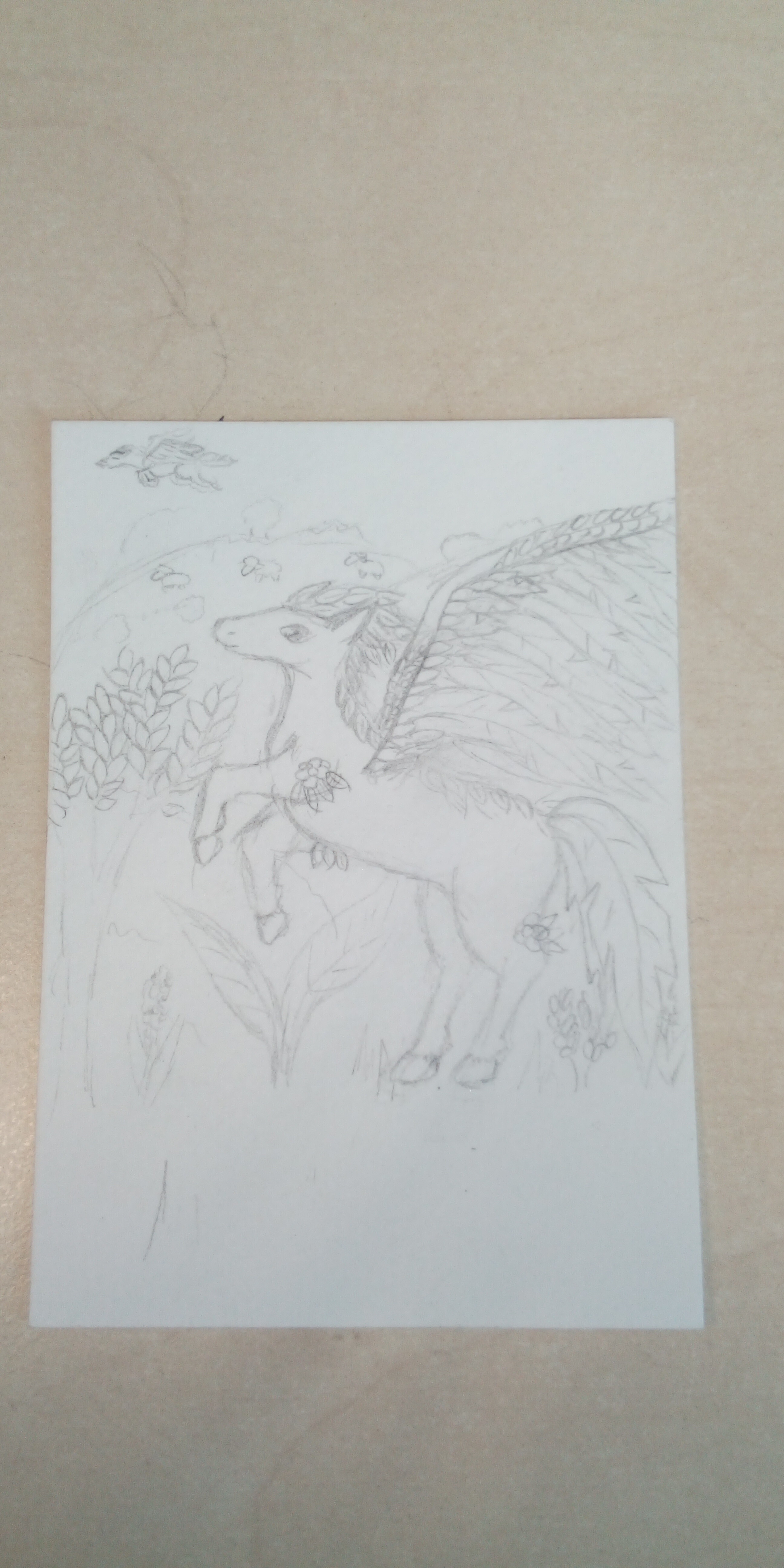 Für die dritte Karte hab ich mich jetzt doch für eine Ponita Typveränderung entschieden ich schwanke aber zwischen Pflanze + Flug oder Fee + Flug. Hab jetzt erstmal ne Skizze zu Pflanze+Flug gemacht