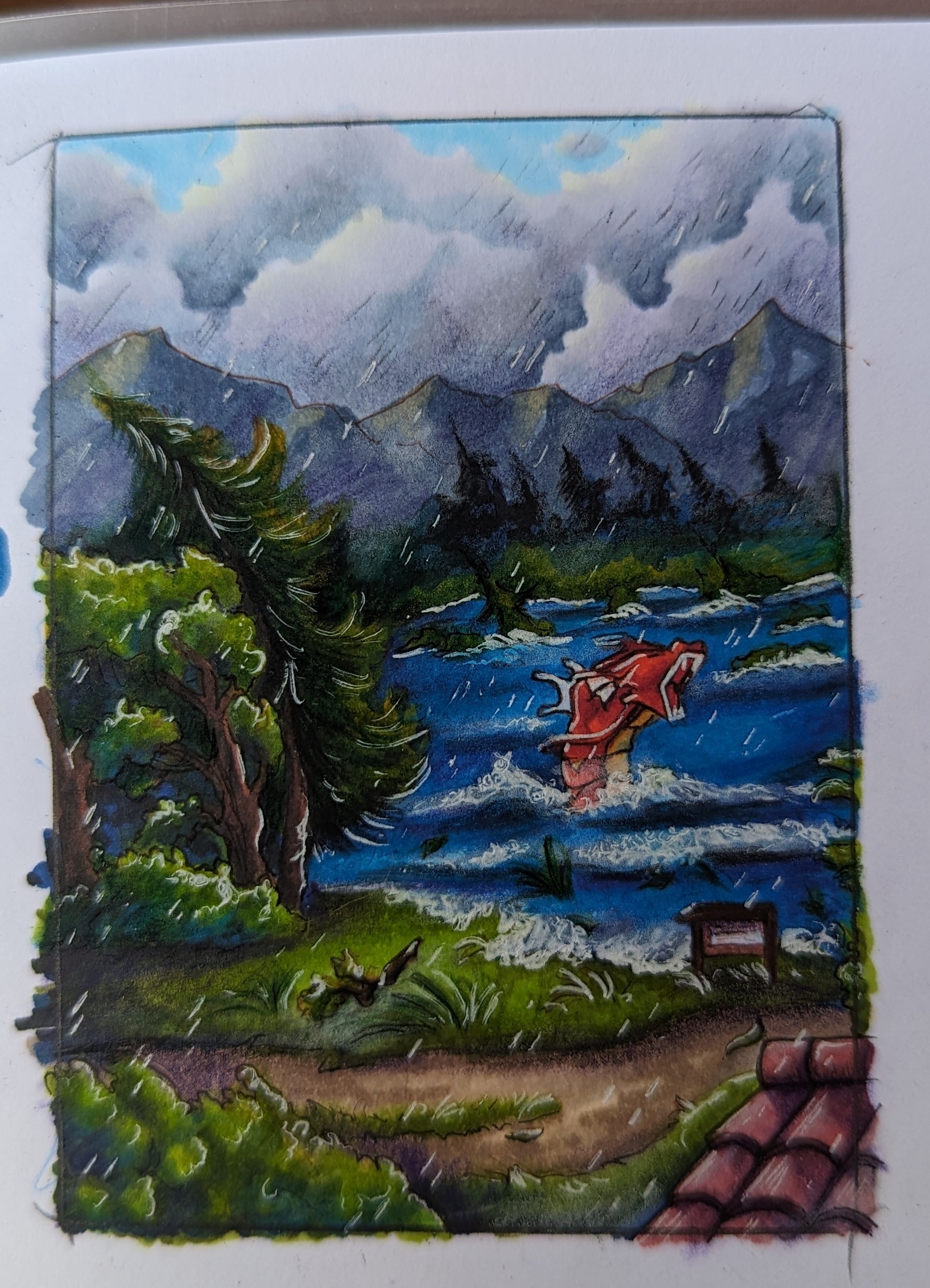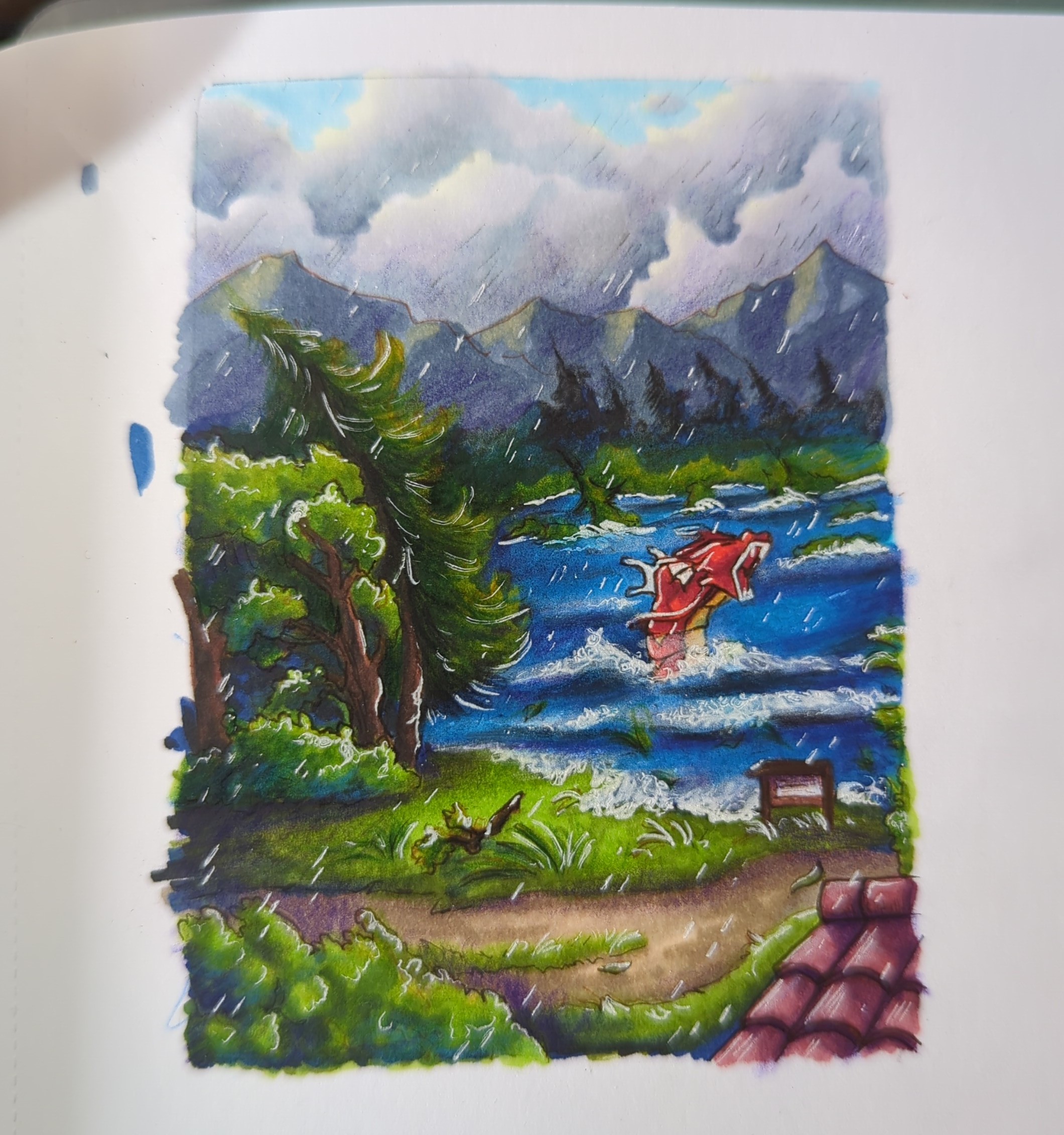 Tolle Skizze, ich mag es wie das Garados gegen den Sturm anbrüllt :D