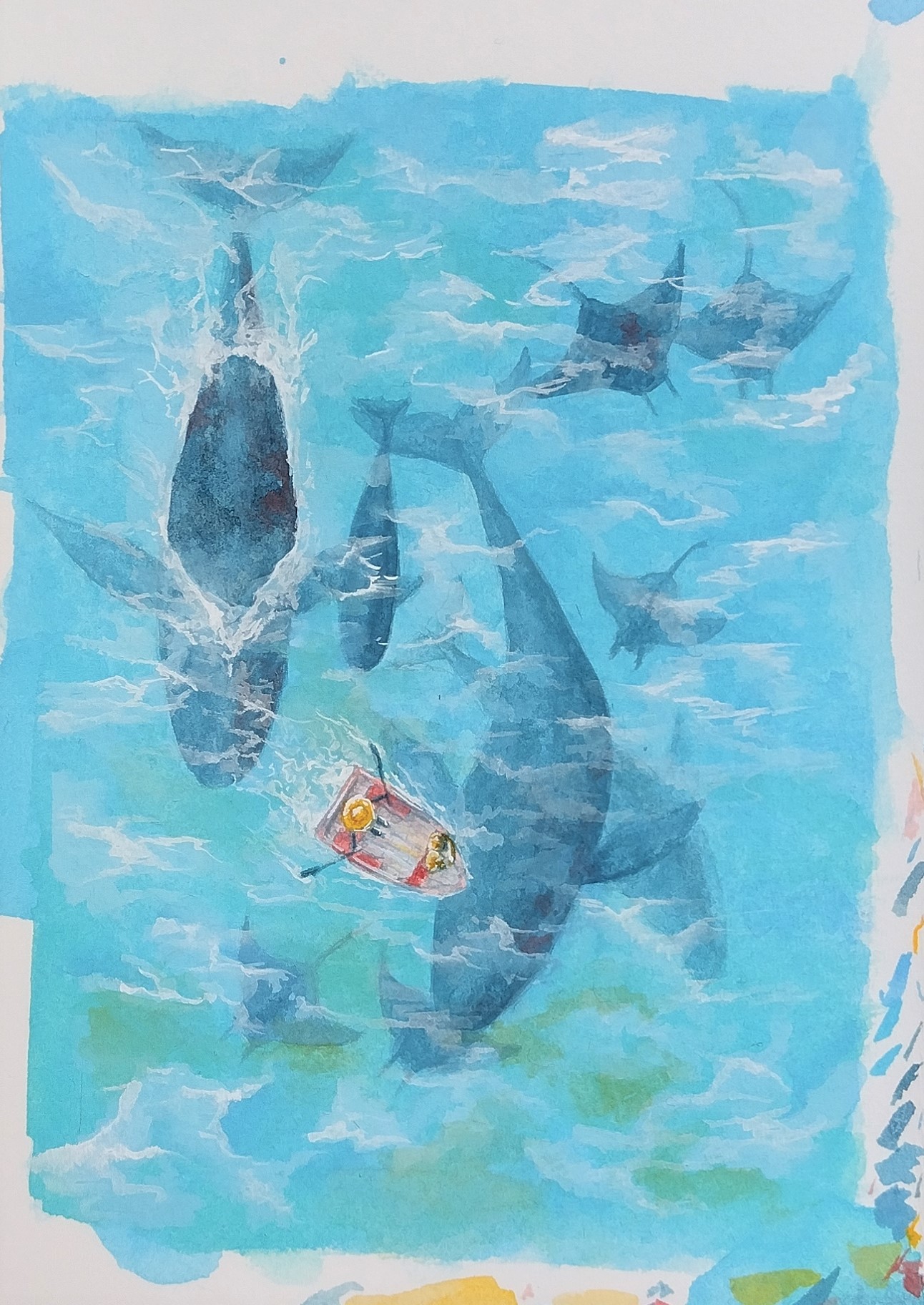 @Salamandea Ja klar, buntes Papier ist total okay. Man kann bei Postercolor auch toll damit spielen, etwas vom bunten Papier durchblitzen zu lassen, wenn man mag. :)