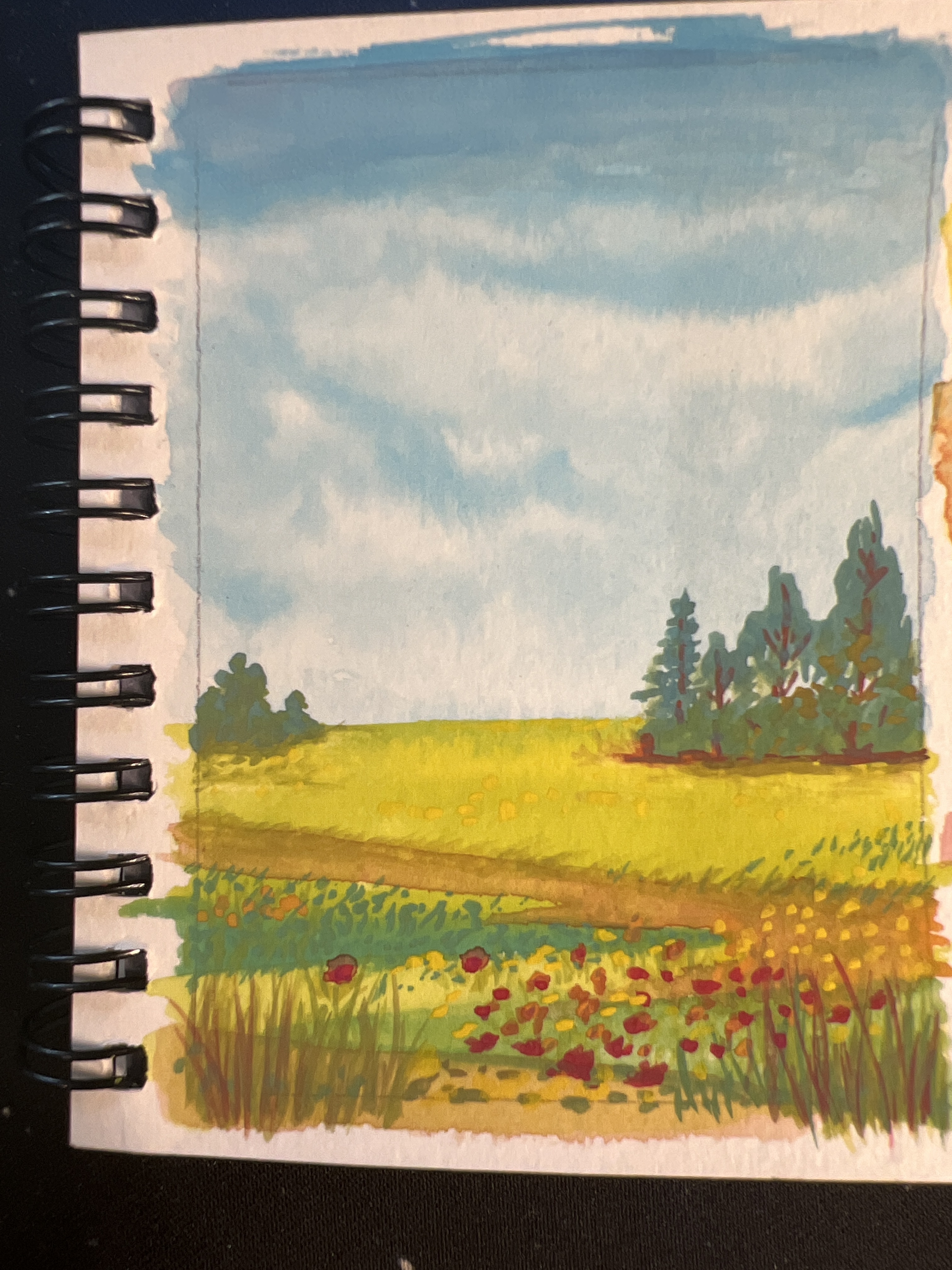 Bei der Landschaft, die du zuletzt gepostet hast, ist es dir klasse gelungen, ein Motiv zu wählen, das mit den dir zur Verfügung stehenden Farben toll wirkt! Besonders der Himmel ist einfach genial geworden. Eventuell würde dem Motiv noch ein “Lebenszeichen” gut tun - eine streunende Katze, ein Spaziergänger in der Ferne, ein Reh, das durch das Feld springt, irgendsowas. Aber zulässig ist die Karte so.