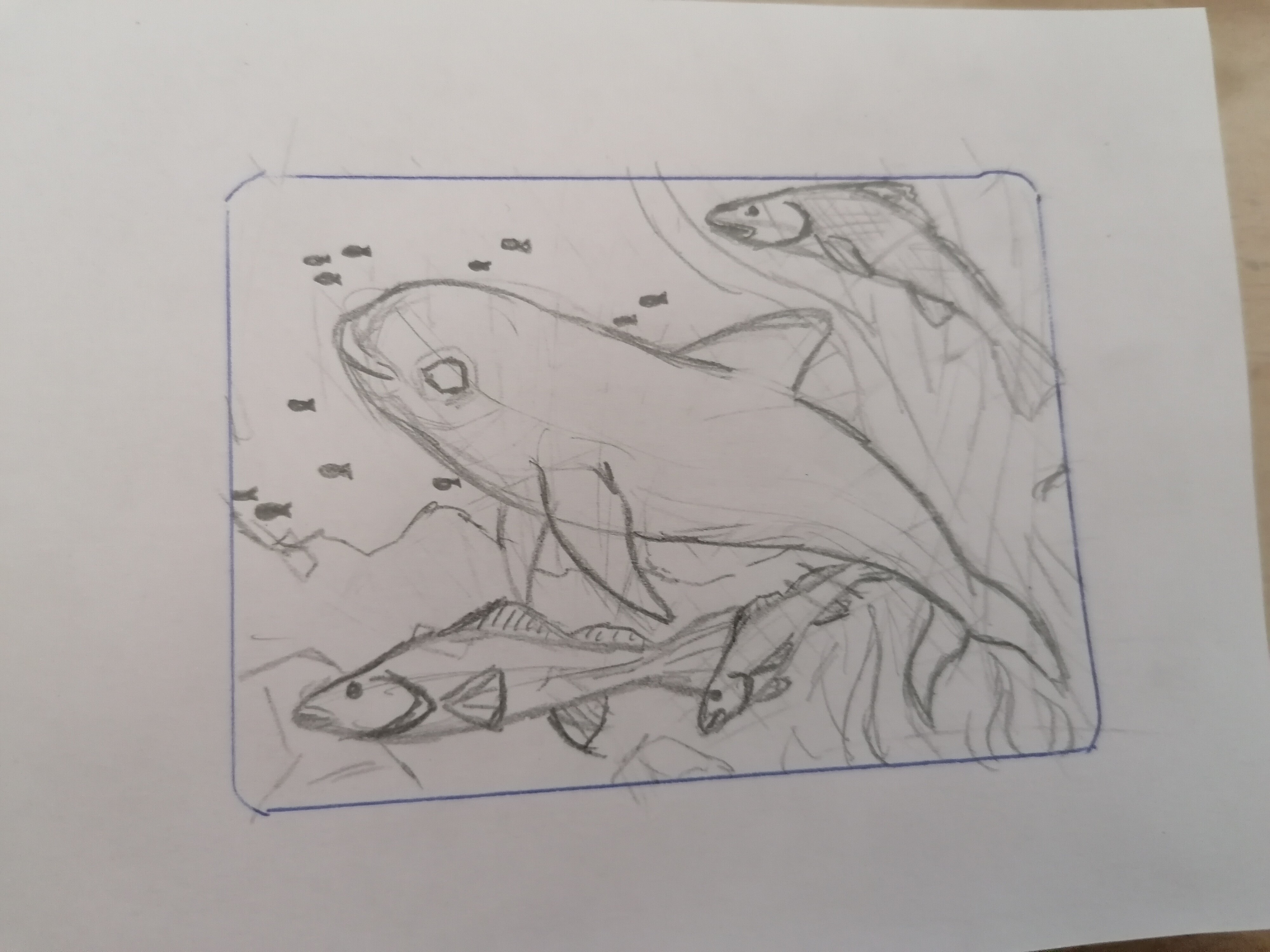 Ich wollte mal fragen ob diese Idee so okay wäre, da das ja doch ein sensibles Thema sein könnte. Die hauptbedrohung des Vaquita sind Fischernetzte. Er selbst hängt noch nicht darin, dafür aber zwei Fische. Wäre die Idee so okay.