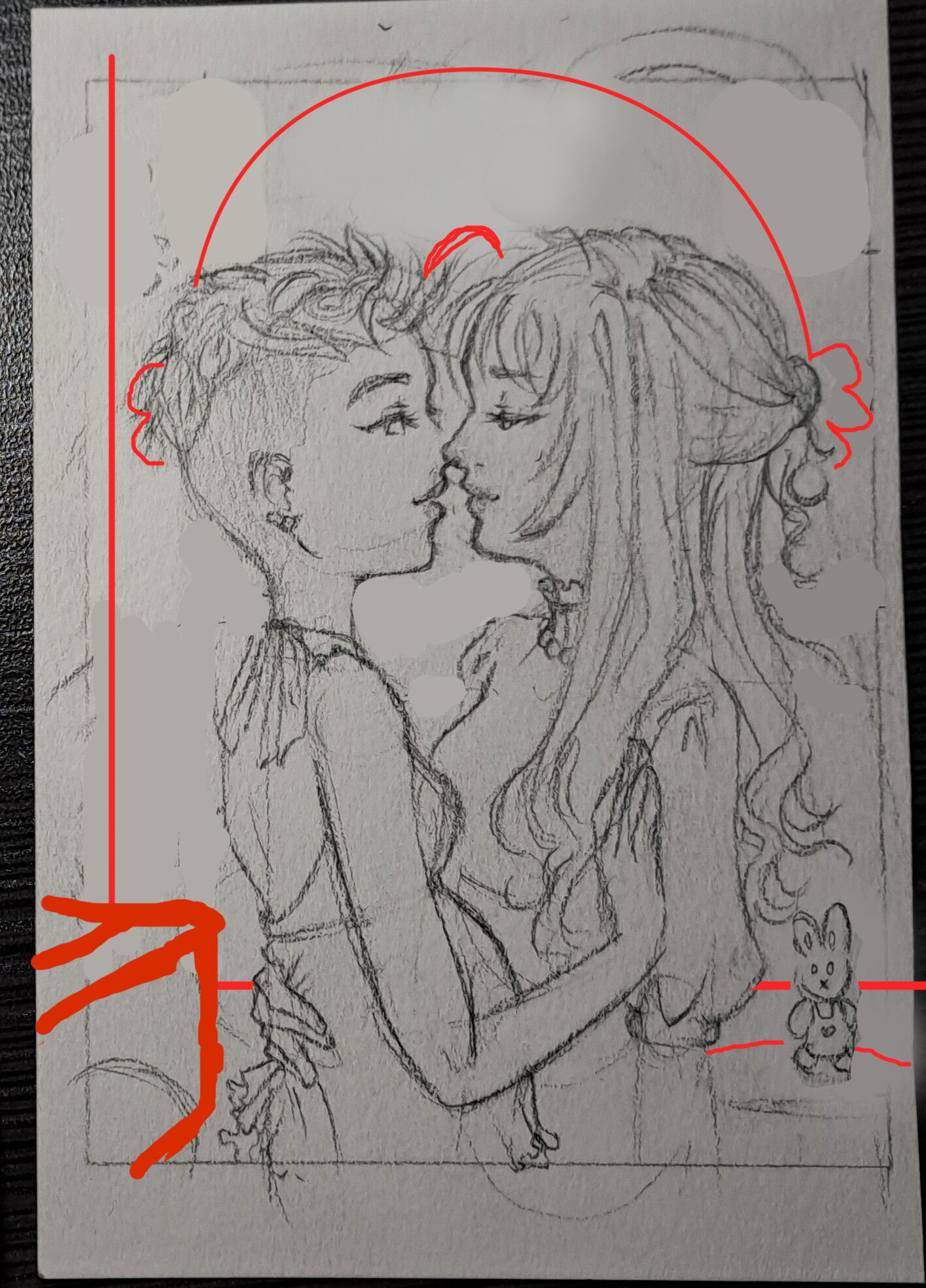 Und einmal sehr grobe Redlines. Hab aktuell leider kein Tablet, deswegen nicht ordentlich eingezeichnet, aber als Beispiel wie es perspektivisch stimmiger aussehen könnte.