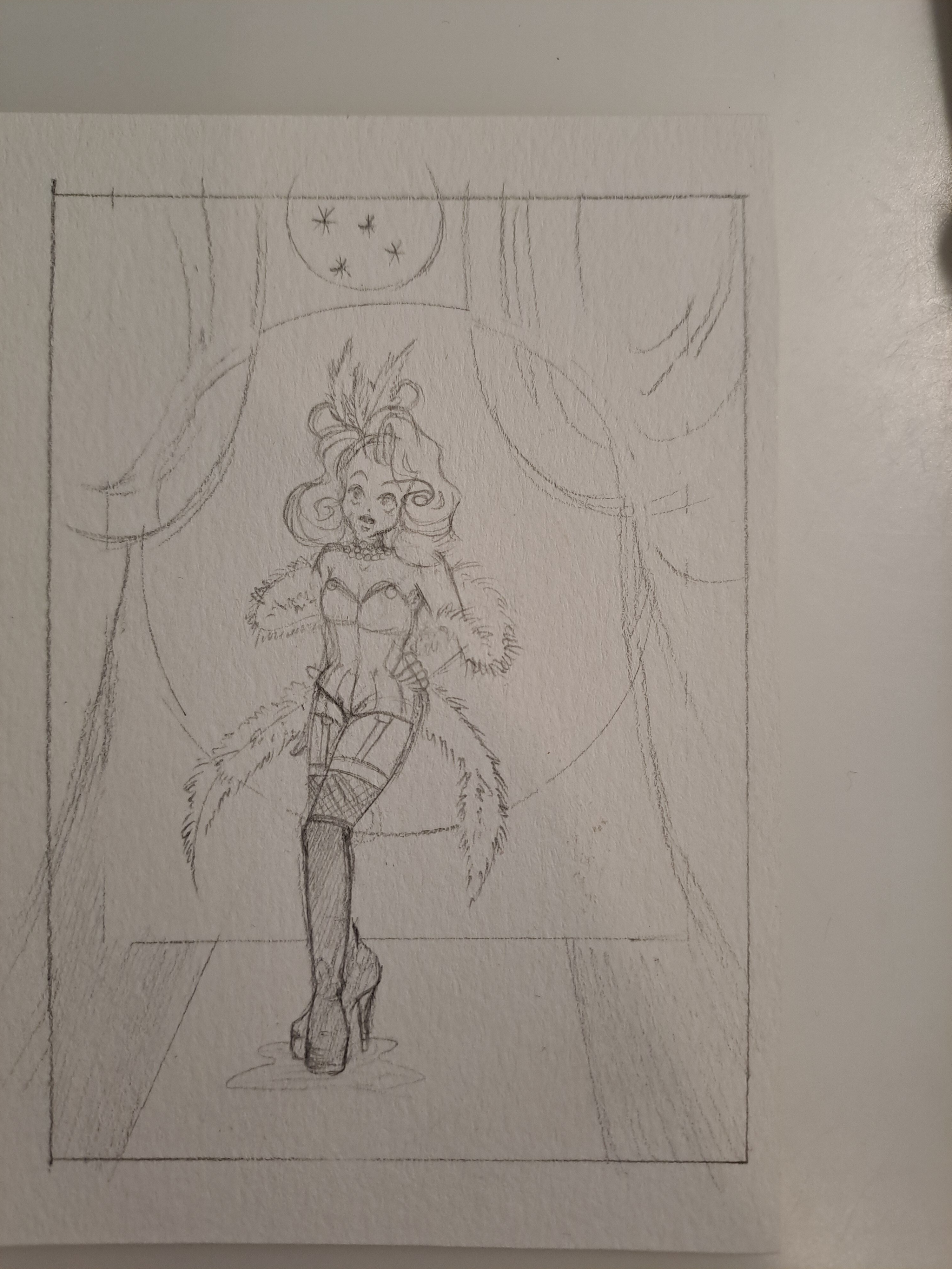 Ich würde den Bildaufbau noch ein bisschen ändern und die Person ein klein wenig größer machen und mehr in die Mitte rücken. Für den Hintergrund hast du Tempel geplant? So interpretiere ich zumindest das angedeutete Gebäude im Hintergrund bei der Skizze. Der kann gerne ruhig etwas größer sein und mehr vom Hintergrund einnehmen. Alternativ wären weitere Tempel oder eine angedeutete Stadt eventuell ganz schön im Hintergrund?