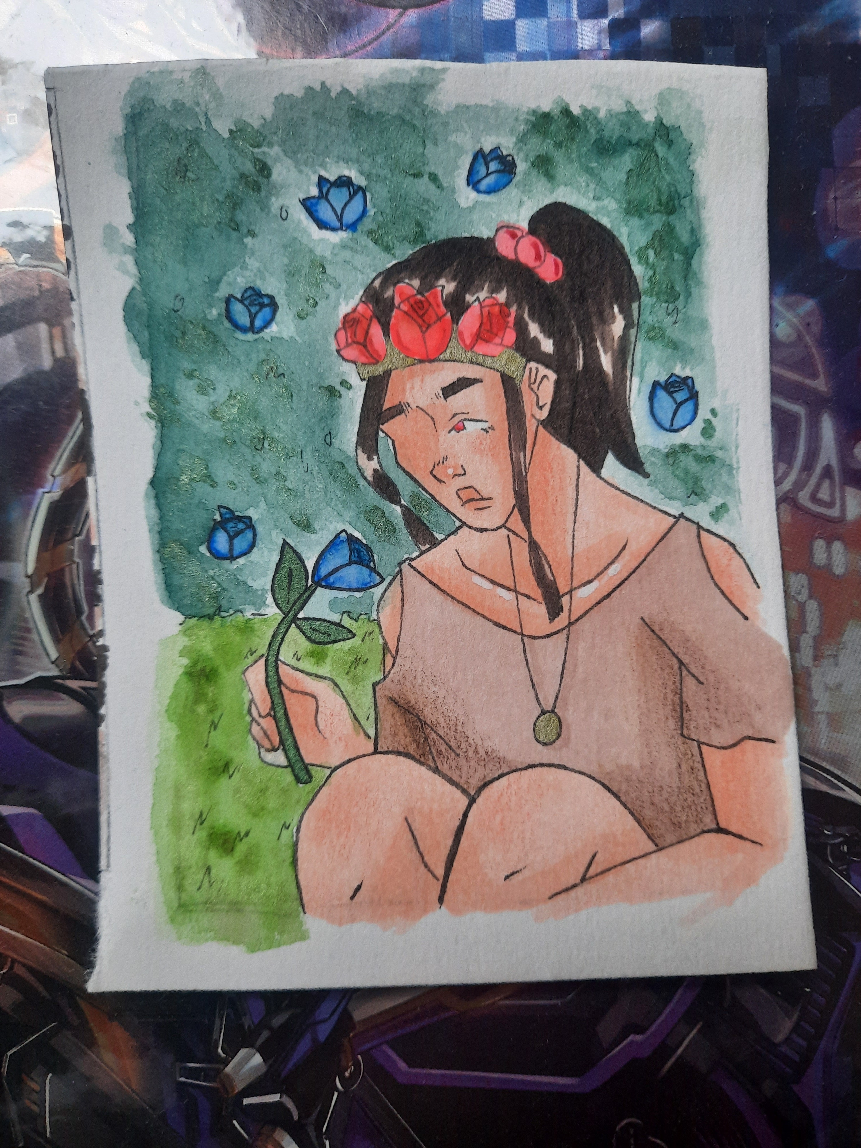 Hello, ich wäre dann mit einer neuen Karte fertig. Es sollte eigentlich so aussehen als ob hinter dem Jungen ein Rosenbusch wäre, aber iwie bin ich mir nicht ganz so sicher ob man das erkennt