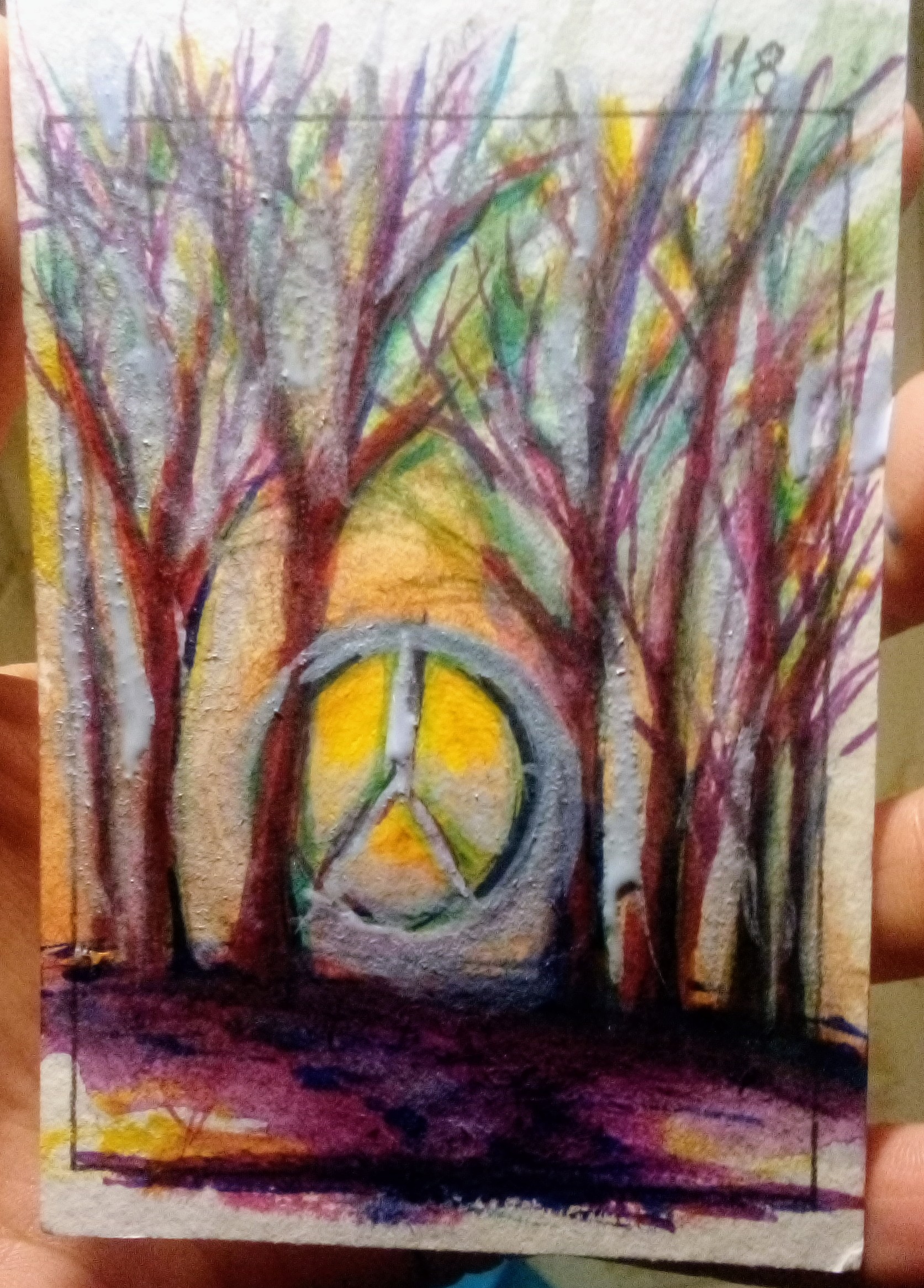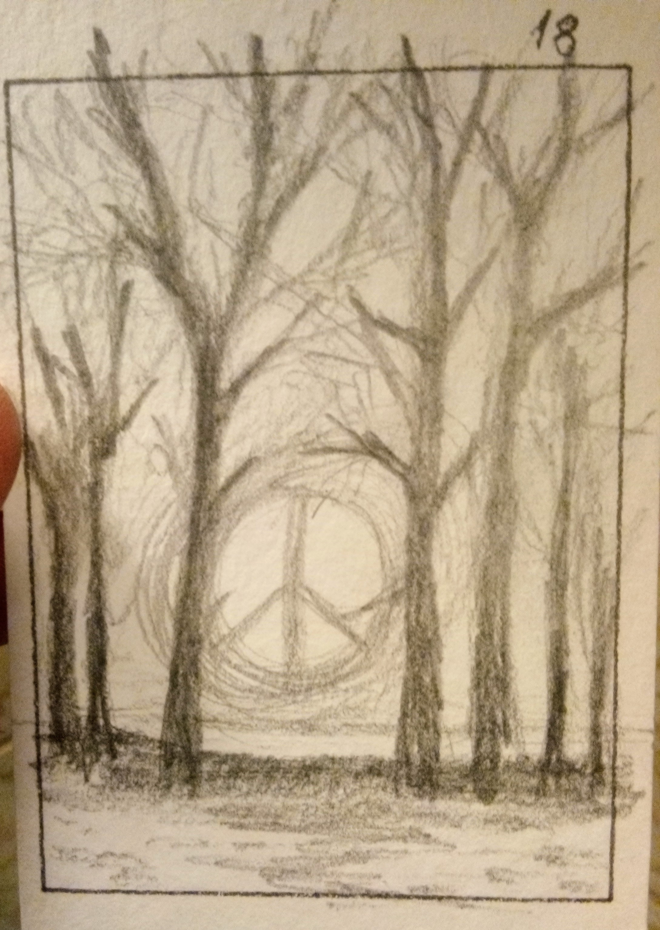 ich habe irgendwie gerade Lust auf eine weitere Karte. Etwas außerhalb meiner Komfort Zone… Schön ausgearbeitete Bäume, Wasser, Schatten und ein zartes Peace Zeichen, wenn das als Motiv ok ist. Hier nur eine ganz grobe Skizze