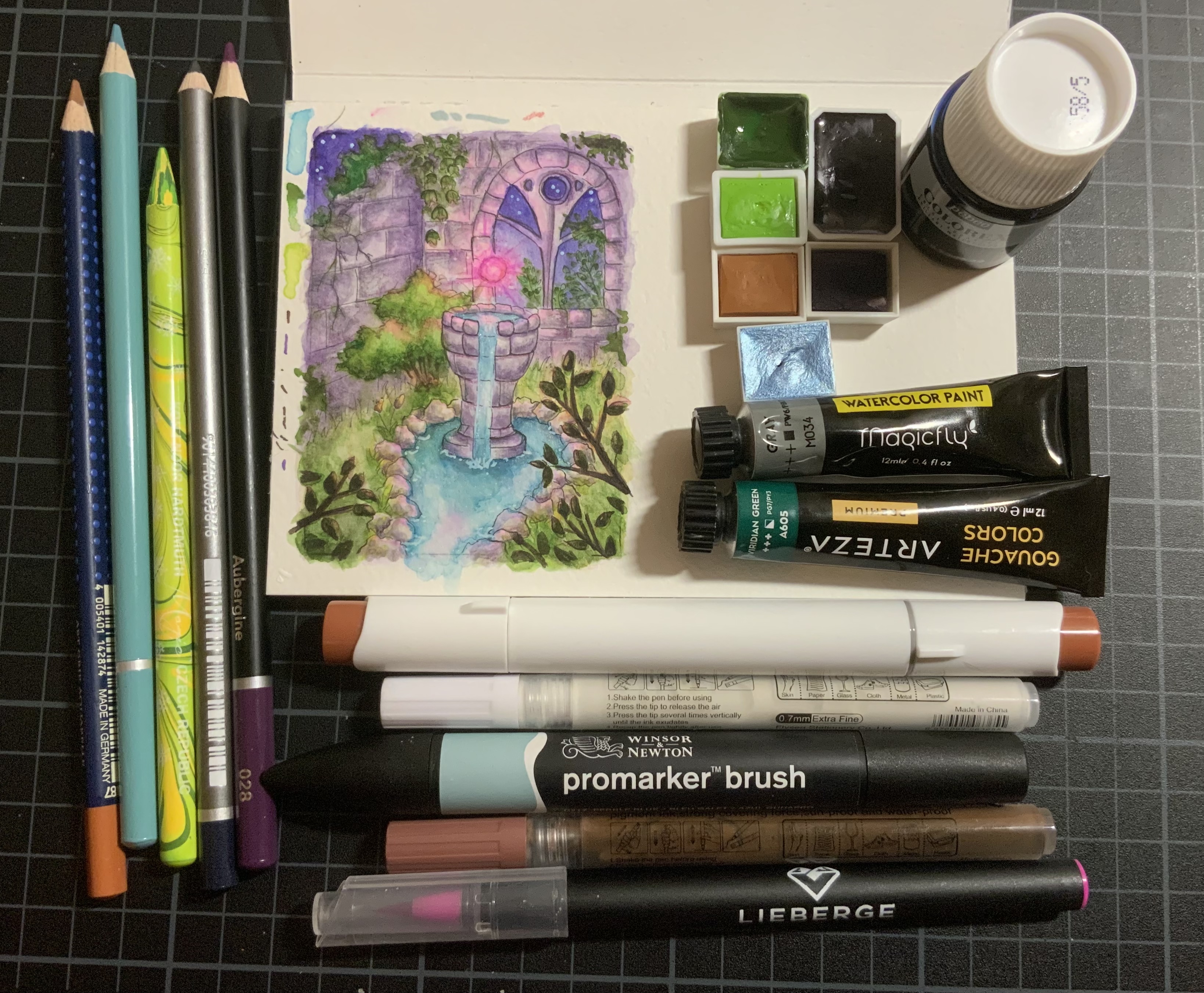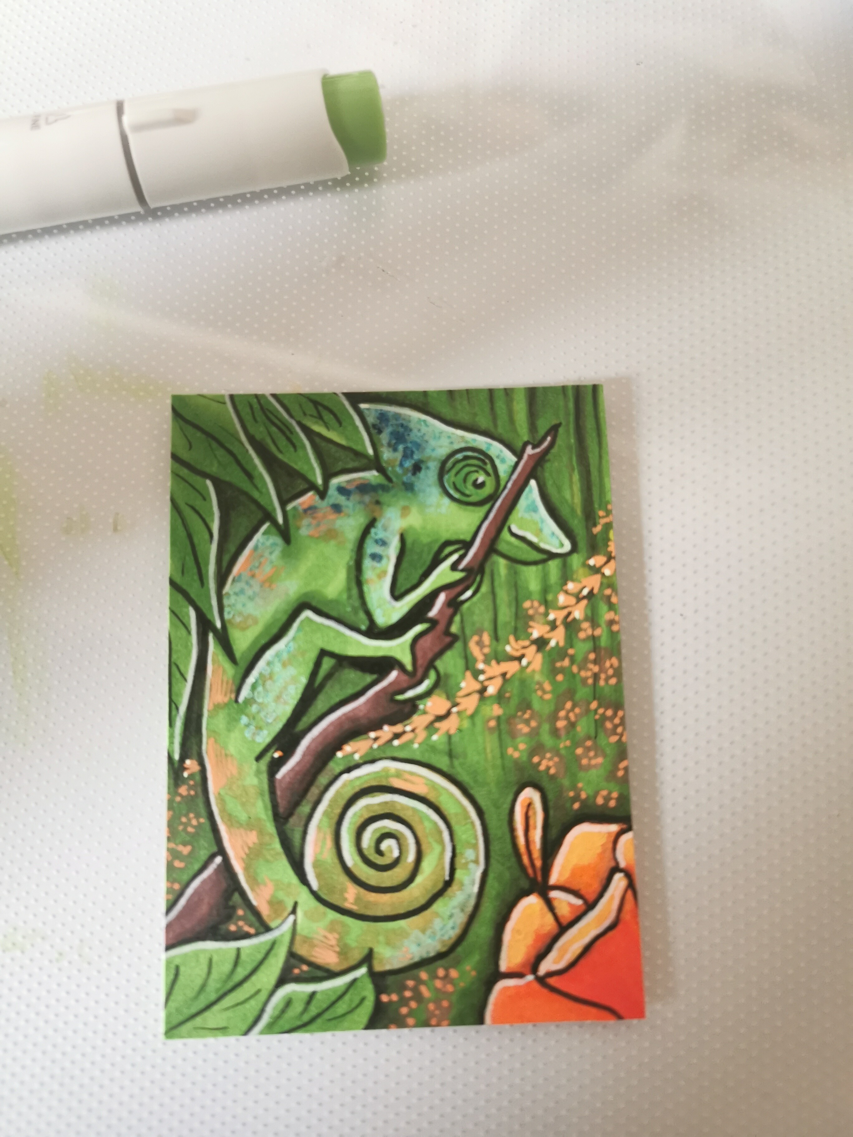 Lieblingsmaterial war der Ohuhu Marker “Honey”, den hab ich irgendwie überall als Basis-Farbe eingebracht xD Und der bunte Beleduc Stift! Der kam aber eher im Skizzenbuch zu Einsatz als auf einer Karte