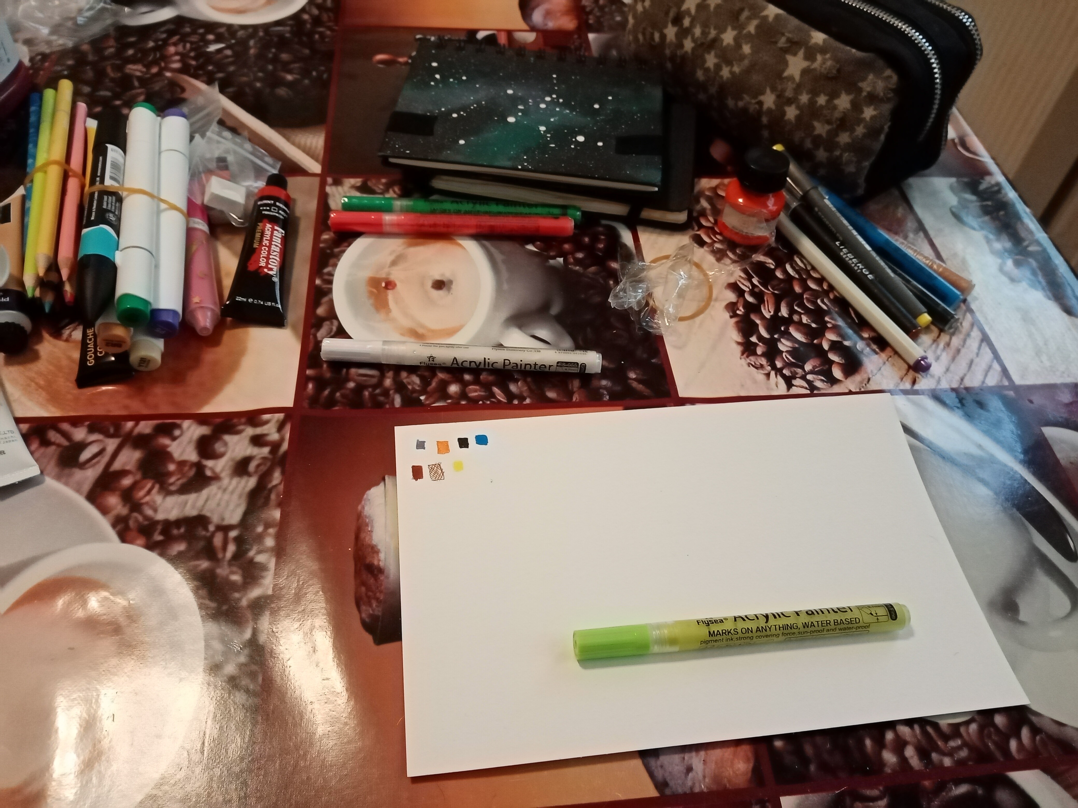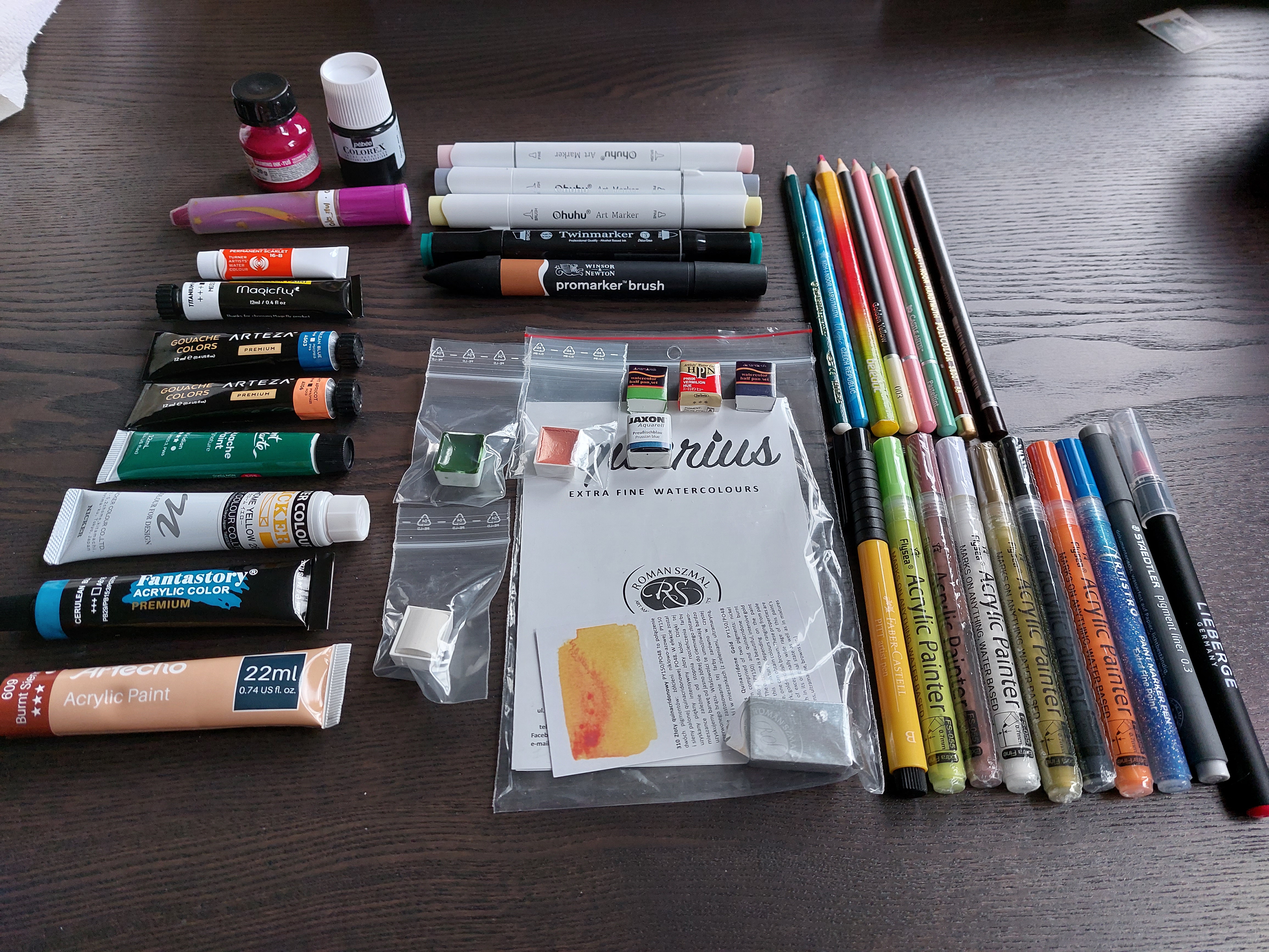 Hab mit den Acrylstift-Bündel angefangen, die waren was mich am Neugierigsten gemacht hat ohne das ich mir Wasser holen gehen muss xD