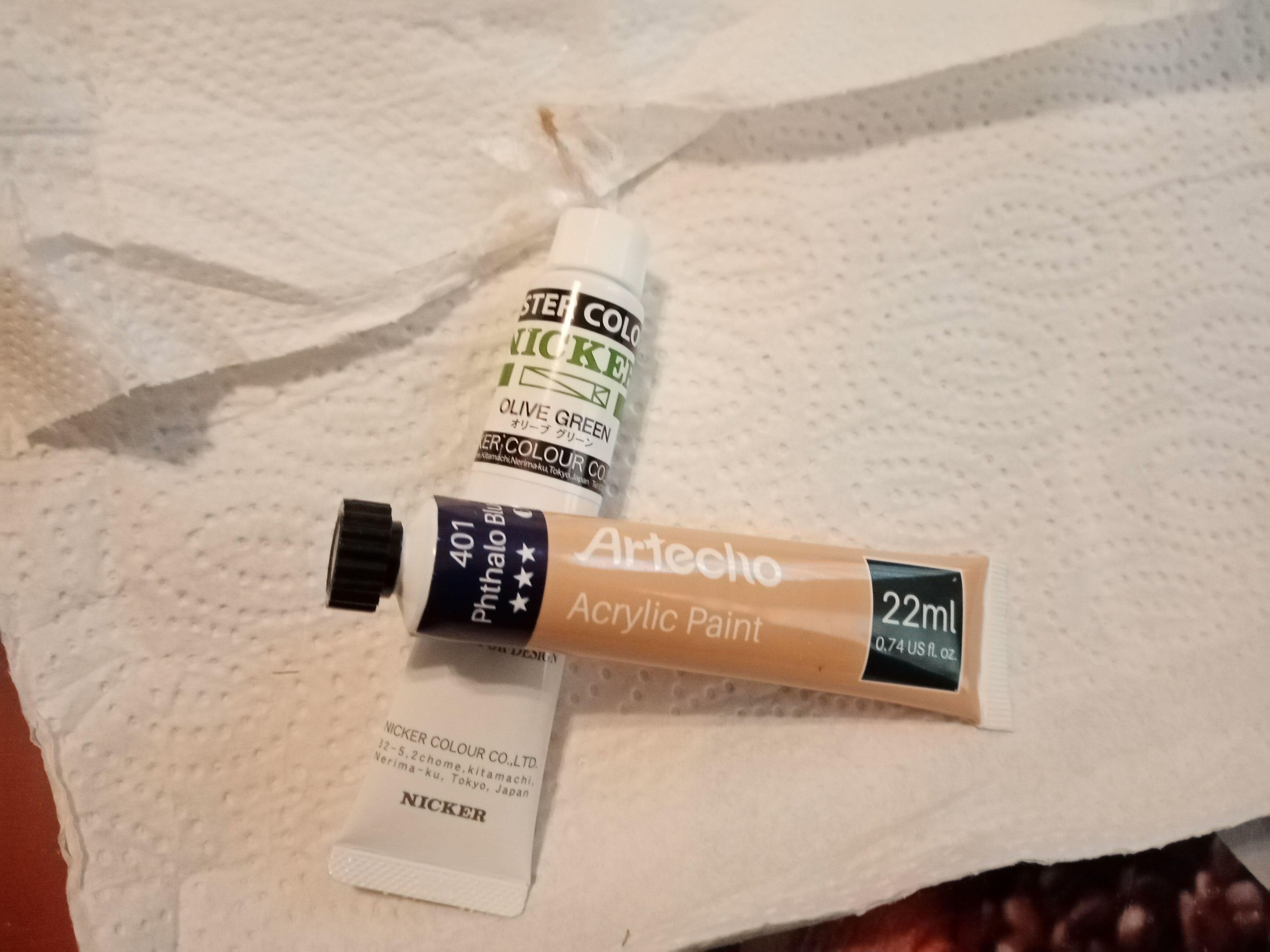 - dem folgten zwei Tuben, einmal Acrylfarbe (ein Phatalo Blau in einer irreführenden Braunen Tube xD) , und einmal Nicker Poster Colour