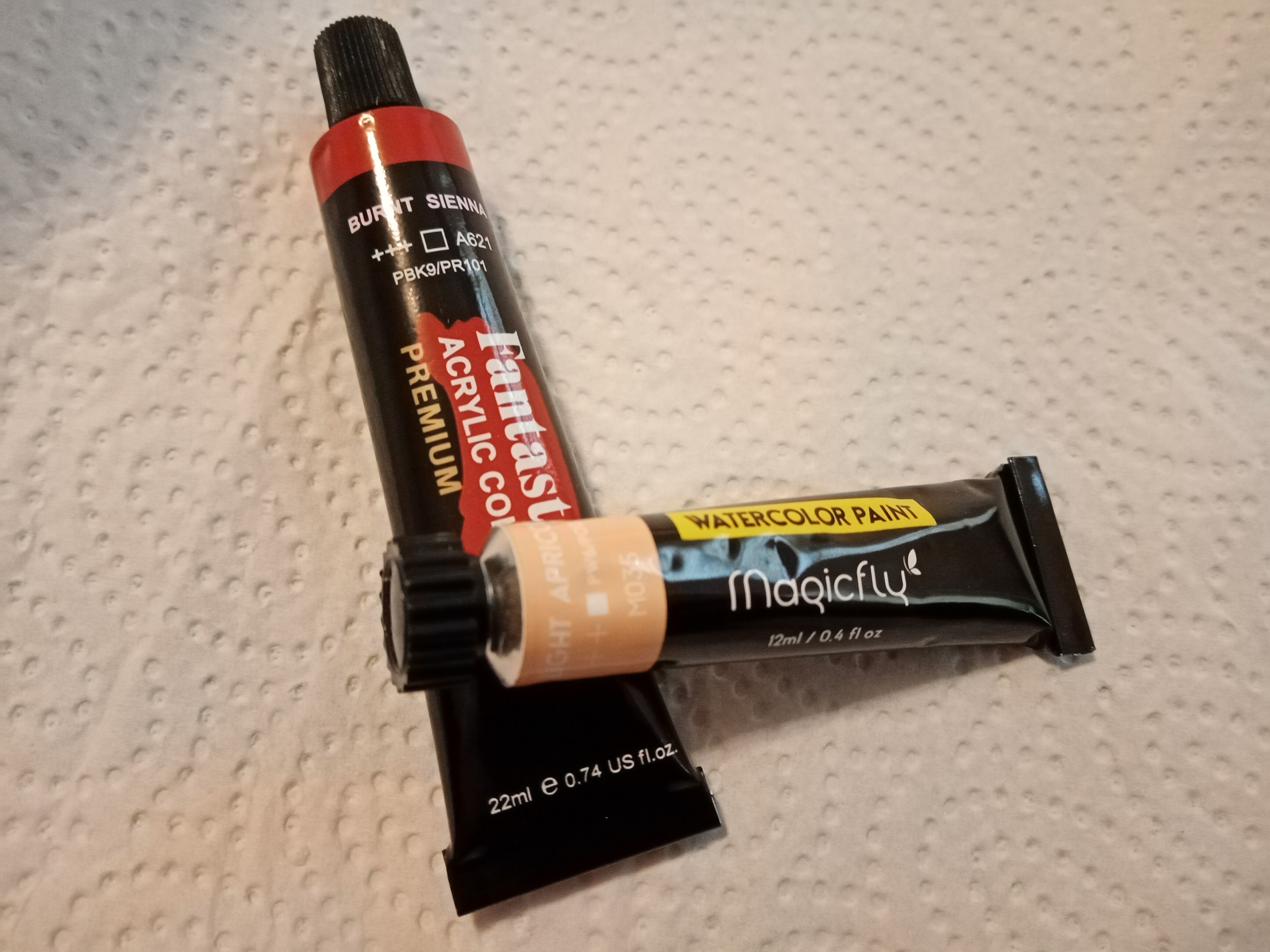 - das vorletzte Päckchen enthielt erneut zwei Tuben, erneut einmal Acrylfarbe, und einmal Aquarellfarbe.