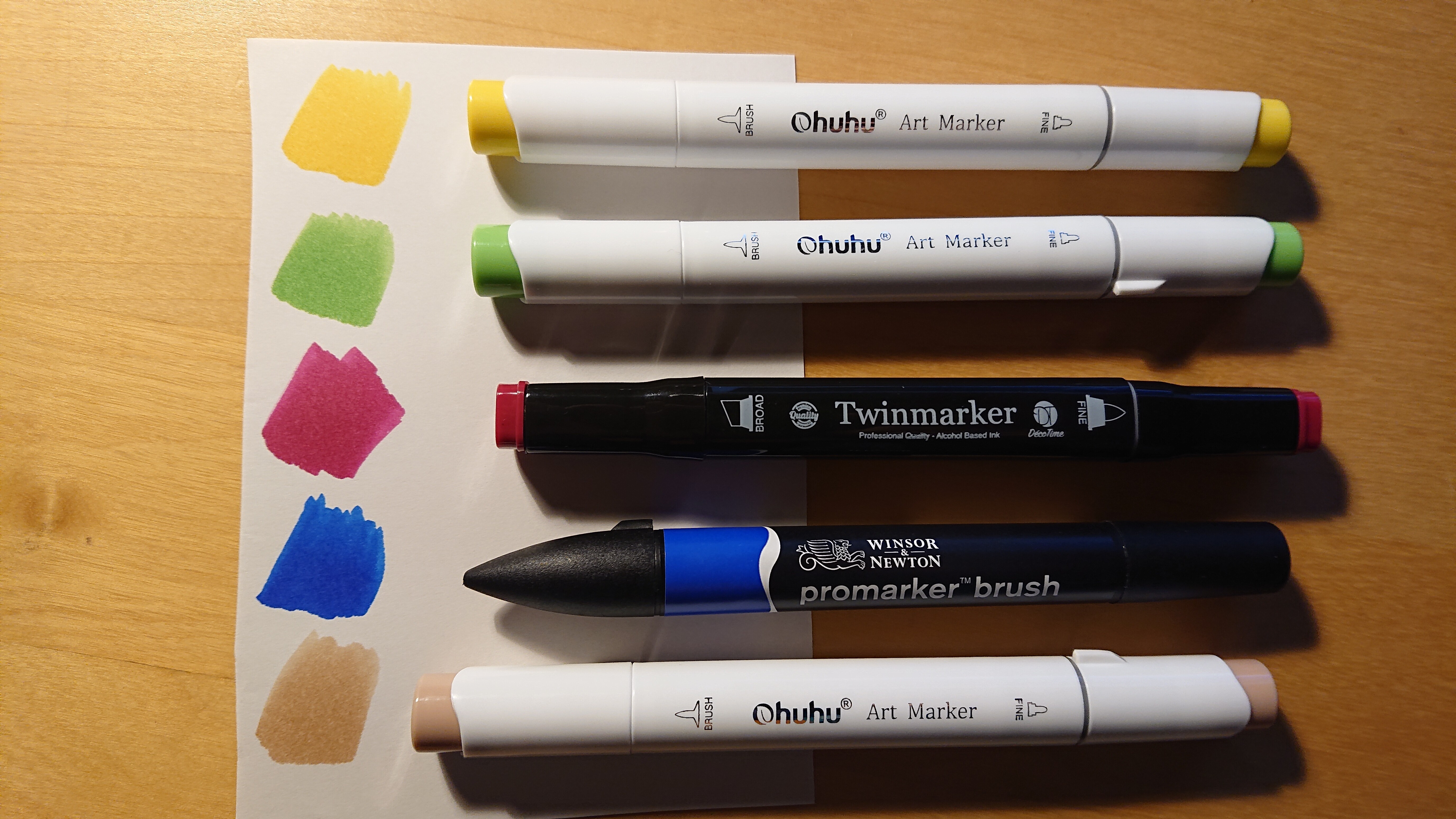 3 Ohuhu Marker Marker Alkohol-Marker. Verhalten sich im Wesentlichen wie Copics, sind nur die billigere Version davon. XD
