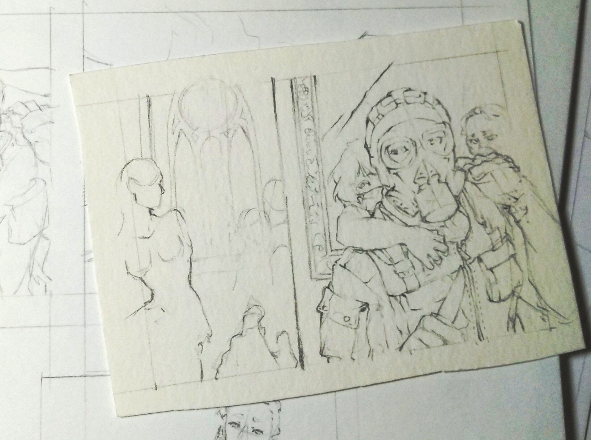 Ich hab jetzt eine Nacht darüber geschlafen und ja, ich ich glaube, ohne den Kontext, das es ein Redraw ist, hätte ich es nicht erkannt. Der ovale Rahmen und das Mauerstück sind schon recht markant finde ich, genauso wie ein Teil des Kleides, das bei der Skizze durchs reinzoomen ebenfalls nicht mehr zu sehen ist.