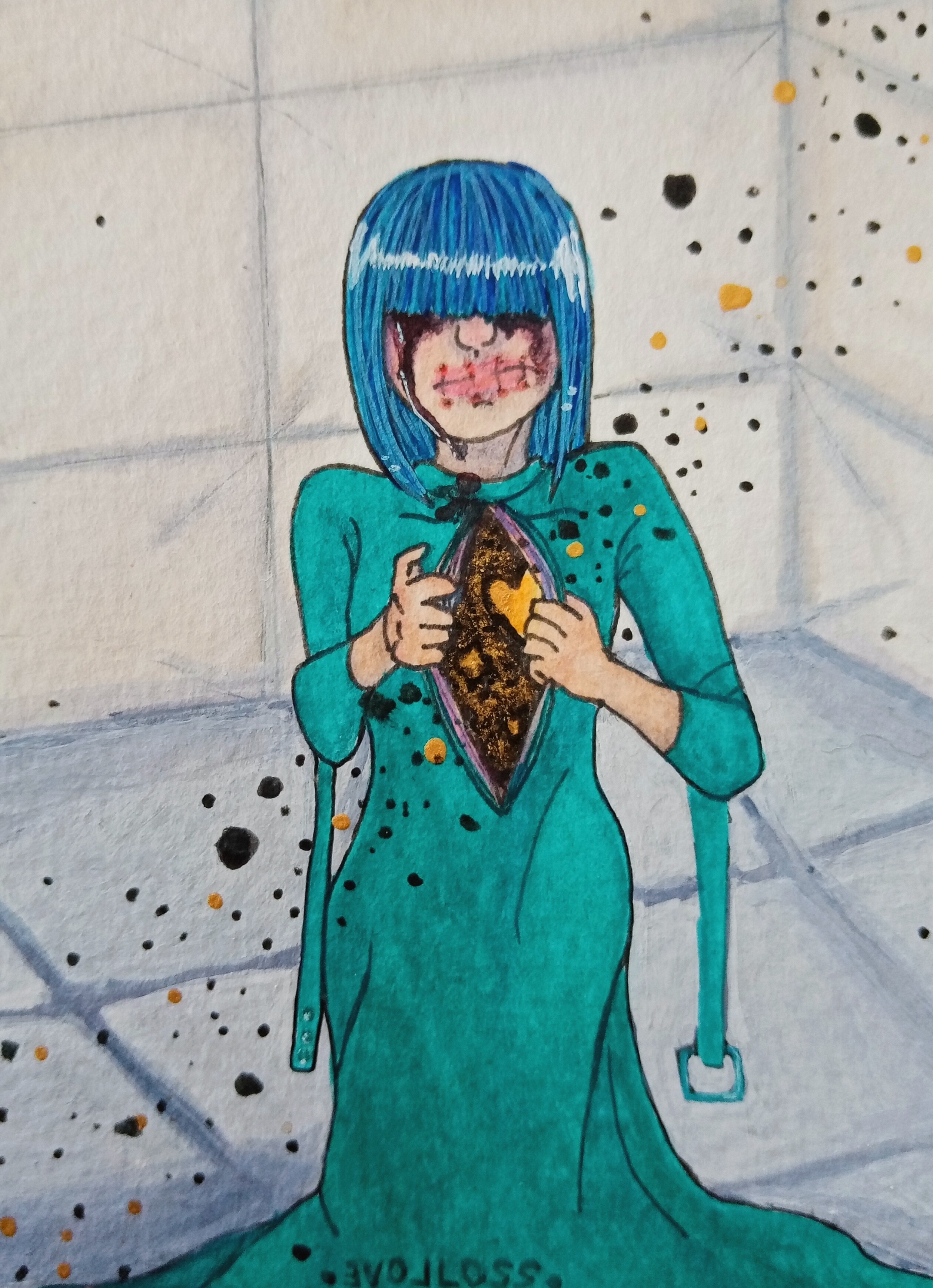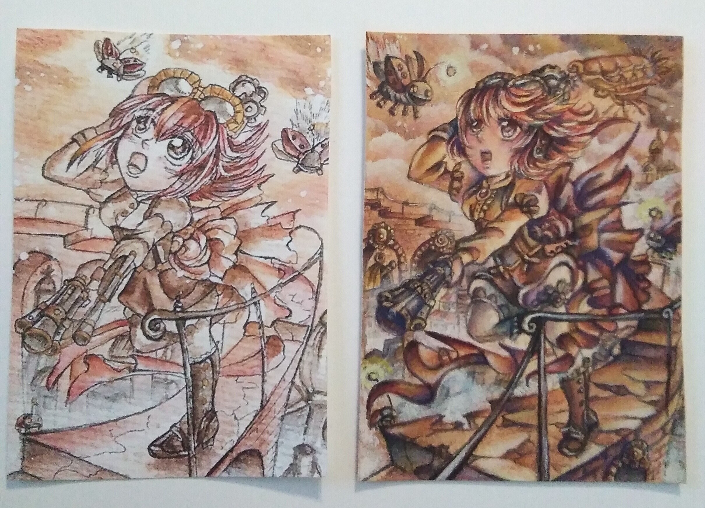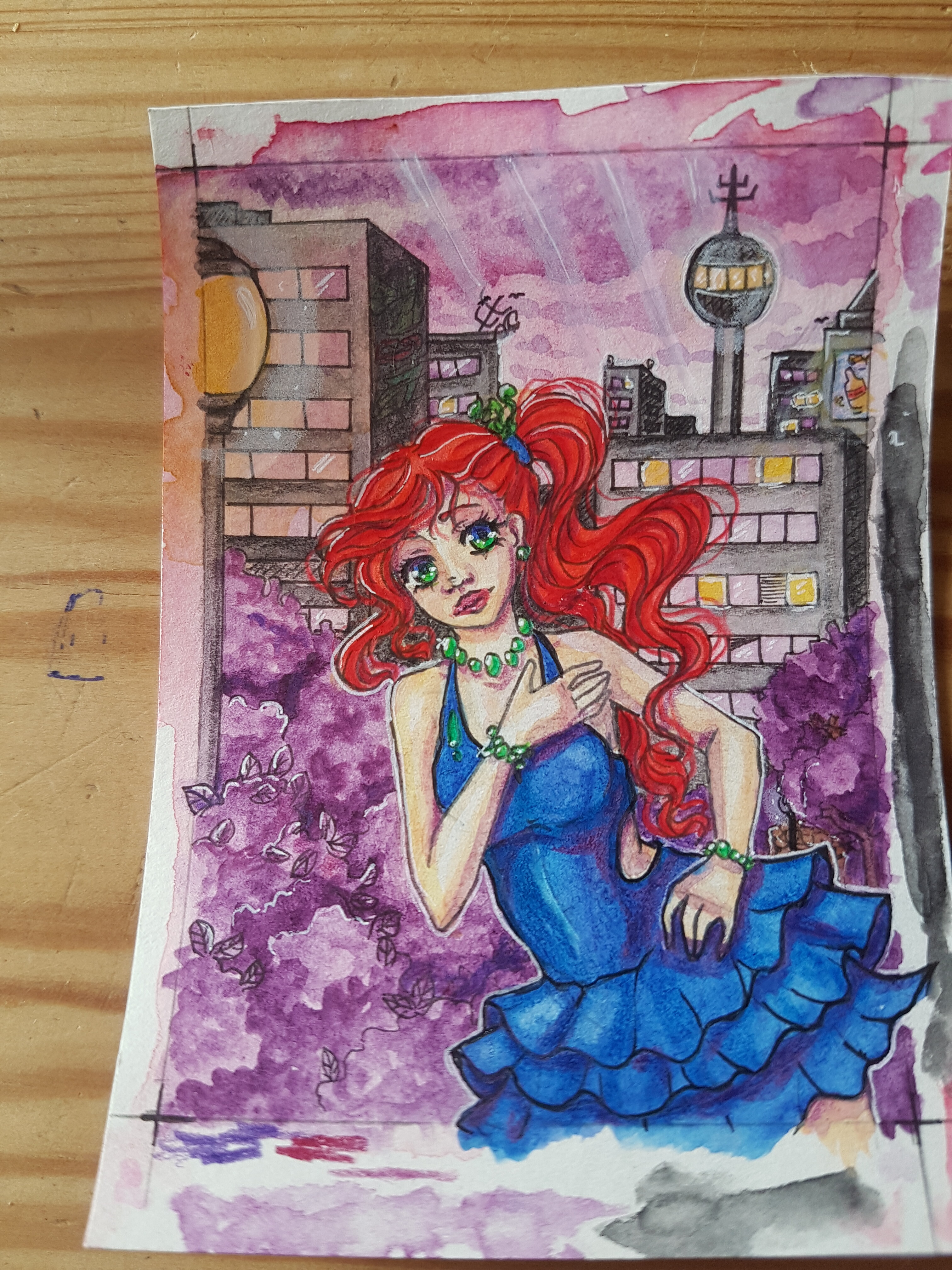 Der Scan wirkt hier sehr gedeckt, da ich getöntes Papier verwendet habe. Im Original sind die Farben satter.