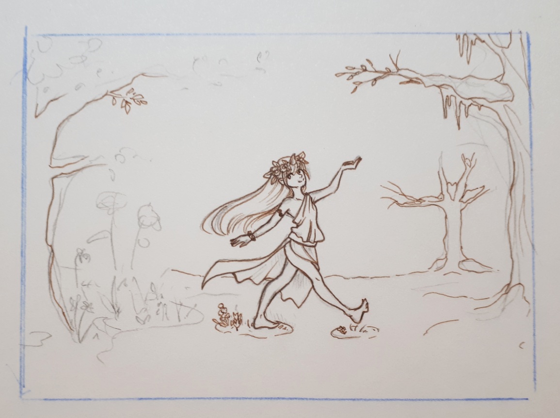 Das ist der aktuelle Stand. Ich hab die BĂ€ume etwas weiter ins Bild reingeholt und die Pose dynamischer gestaltet.