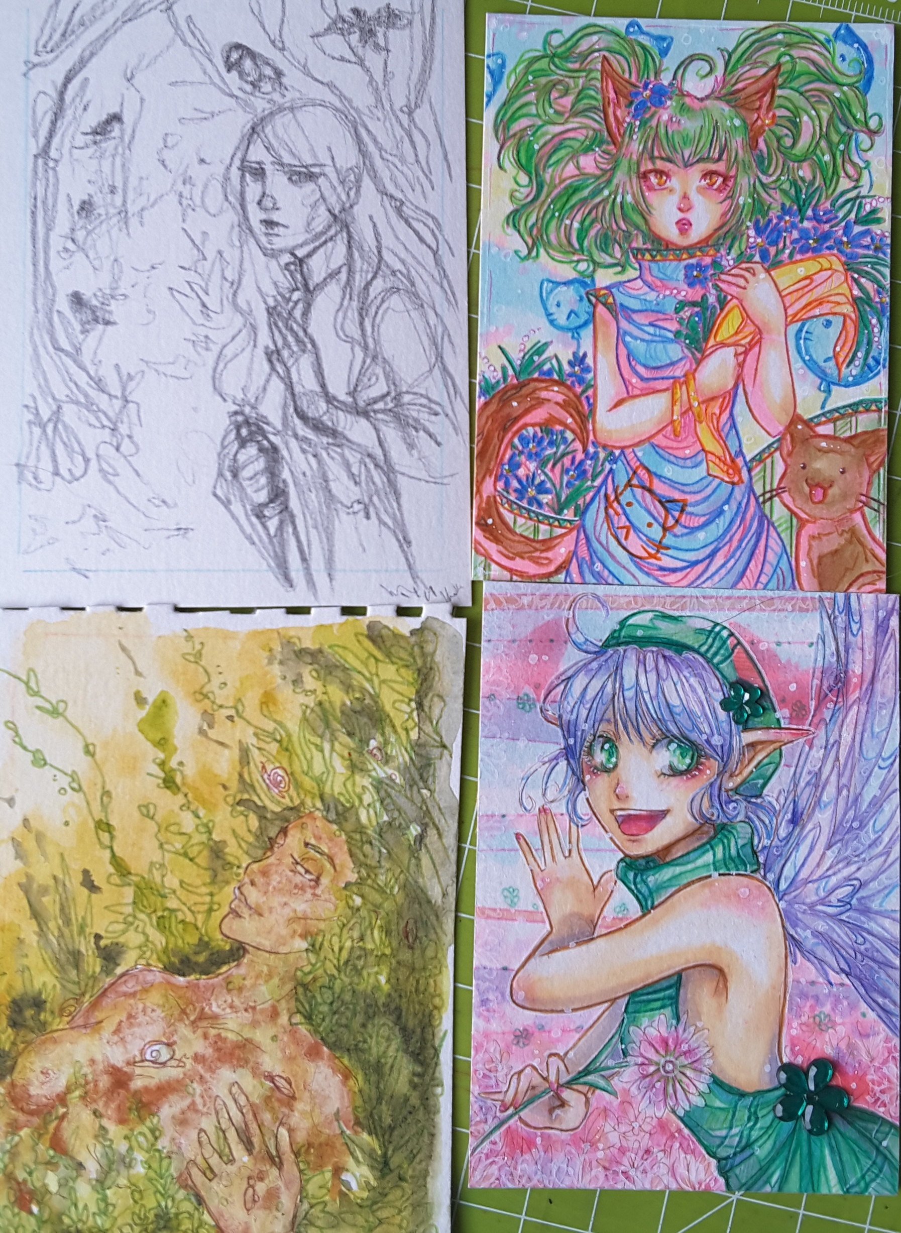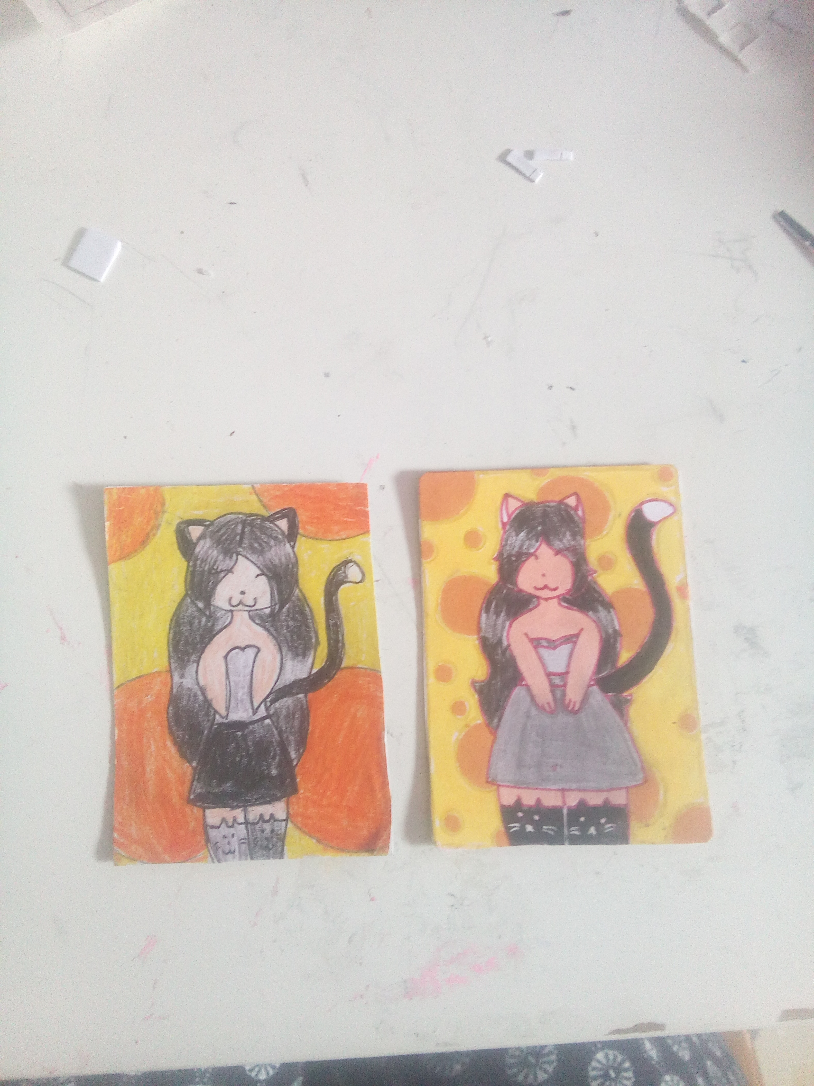 NÀchste Karten sind auch fertig! Die eine mit der Neko war schon vor der Meerjungfrau fertig, aber ich habe etwas verÀndert. Die schwarze Neko ist eine alte KaKao von mir. Nur hatte ich dann das Interesse daran verloren, weil niemand mit mir tauschen wollte. Und jetzt ein Jahr spÀter hab ich doch wieder Motivation bekommen.