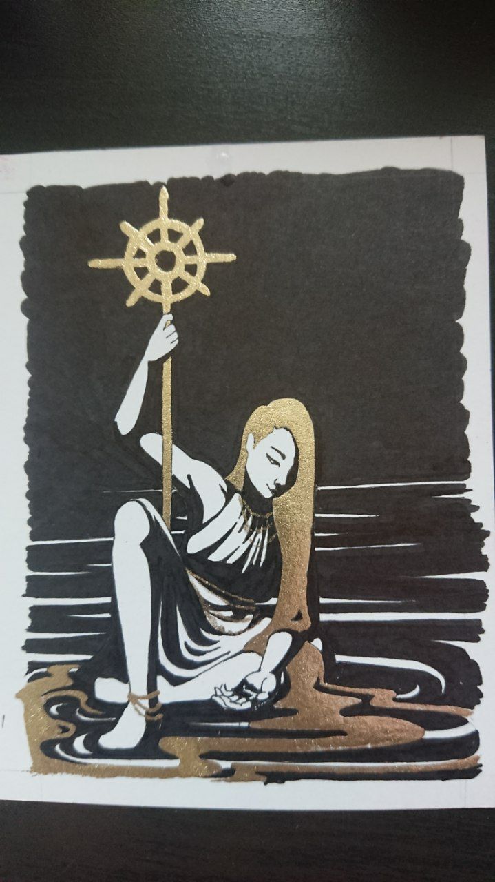 (Oder fast fertig, wahrscheinlich mache ich noch ein paar Details mit weißer Tusche, z.B. zu versuchen, das Wasser in der Hand wie Wasser aussehen zu lassen)